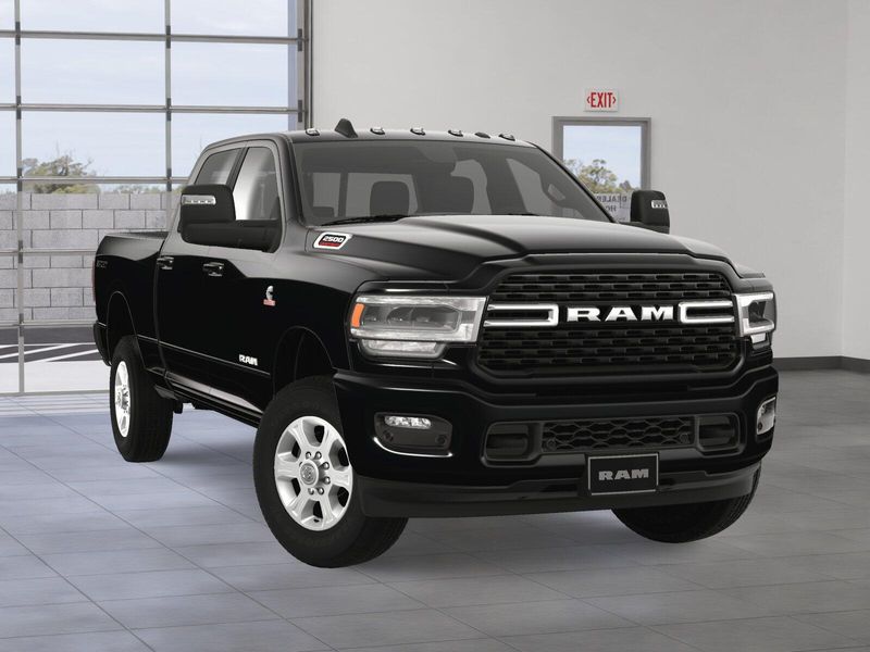 ENGINE: 6.7L I6 CUMMINS TURBO DIESEL Selective Catalytic Reduction (Urea), Dual 730 Amp Maintenance Free Batteries, Cummins Turbo Diesel Badge, Heavy Duty Engine Cooling, Tow Hooks, Diesel Exhaust Brake, Supplemental Heater, Front Bumper Sight Shields, Capless Fuel Fill w/o Discriminator, LEVEL 2 EQUIPMENT GROUP Rear Window Defroster, Blind Spot & Cross Path Detection, LED Tail Lamps, Power Adjustable Pedals, Leather Wrapped Steering Wheel, Rear Power Sliding Window, Rear Dome w/On/Off Switch Lamp, Front Fog Lamps, Glove Box Lamp, Auto Power-Folding Mirrors, Footwell Courtesy Lamp, Media Hub w/2 Charge Only USBs, Heated Front Seats, Mirror Running Lights, Heated Steering Wheel, Foam Bottle Insert (Door Trim Panel), Wheels: 18 x 8.0 Polished Aluminum, Dampened Tailgate, Security Alarm, Big Horn IP Badge, Power Adjustable Convex Aux Mirrors, Forward & Reverse Utility Lights, Locking Lower Glove Box, Remote Start System, Radio: Uconnect 5 Nav w/12.0 Display, Google Android Auto, Off-Road Information Pages, Selectable Tire Fill Alert, Trailer Tow Pages, Disassociated, PREMIUM LIGHTING GROUP Front LED Fog Lamps, LED Reflector Headlamps, 9 ALPINE SPEAKERS W/SUBWOOFER, ANTI-SPIN DIFFERENTIAL REAR AXLE, BLACK, PREMIUM CLOTH BUCKET SEATS Bucket Seats, Manual Adjust 4-Way Front Passenger Seat, Power Adjust 8-Way Driver Seat, Rear 60/40 Folding Seat, Front Seat Back Map Pockets, Power 2-Way Driver Lumbar Adjust, Full Length Upgraded Floor Console, TRANSMISSION: 6-SPEED AUTOMATIC (68RFE).