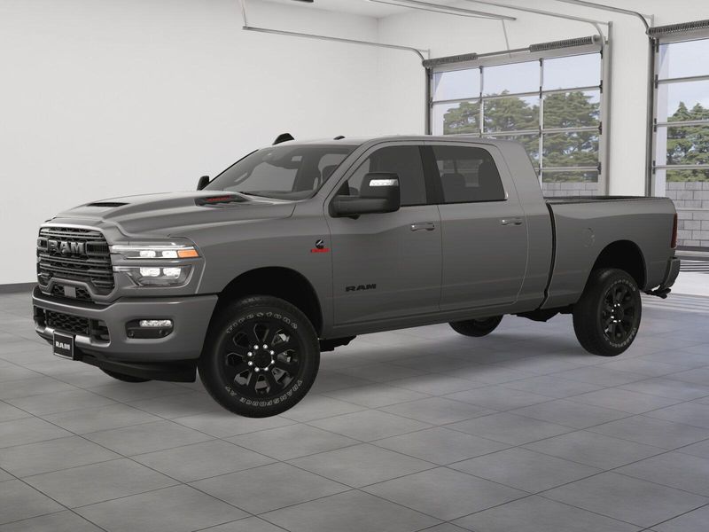 NIGHT EDITION Tires: LT285/60R20E OWL On/Off Road, Black Exterior Truck Badging, Wheels: 20 x 8 Black Painted Aluminum, Gloss Black Grille Billets/Accents, Body Color Grille Surround, Sport Performance Hood, TOWING TECHNOLOGY GROUP Center Stop Lamp w/Cargo View Camera, Surround View Camera System, Trailer Tire Pressure Monitoring System, Trailer Reverse Guidance, LARAMIE LEVEL 1 PLUS EQUIPMENT GROUP Center Stop Lamp w/Cargo View Camera, Rain Sensitive Windshield Wipers, Power Adjustable Pedals w/Memory, LED Bed Lighting, Traffic Sign Recognition, Adaptive Steering System, Auto Dim Exterior Mirror, Anti-Spin Differential Rear Axle, Drowsy Driver Detection, MOPAR Deployable Bed Step, Foam Bottle Insert (Door Trim Panel), Active Lane Management System, Power Heated Fold Telescope Mirrors w/Memory, Remote Tailgate Release, MOPAR Spray In Bedliner, Auto High Beam Headlamp Control, Exterior Mirrors w/Memory, Auto Dim Exterior Passenger Mirror, Auto Adjust In Reverse Exterior Mirrors, MOPAR FRONT & REAR RUBBER FLOOR MATS, TRANSMISSION: 8-SPEED TORQUEFLITE HD AUTOMATIC (STD), ENGINE: 6.7L I6 CUMMINS HO TURBO DIESEL (STD), BLACK, LEATHER TRIMMED BUCKET SEATS Bucket Seats, Dual Wireless Charging Pad, Ventilated Front Seats, #1 Seat Foam Cushion, Radio/Driver Seat/Mirrors/Pedals Memory, Full Length Upgraded Floor Console.