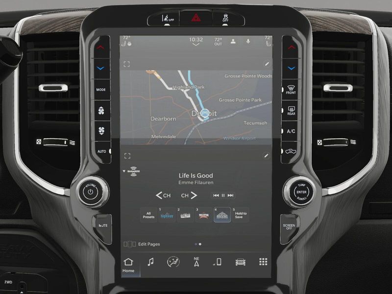 Navigation, 4x4, Premium Sound System, Satellite Radio, iPod/MP3 Input. Ram Laramie with Granite Crystal Metallic Clearcoat exterior and Black interior features a Straight 6 Cylinder Engine with 430 HP at 2800 RPM*.