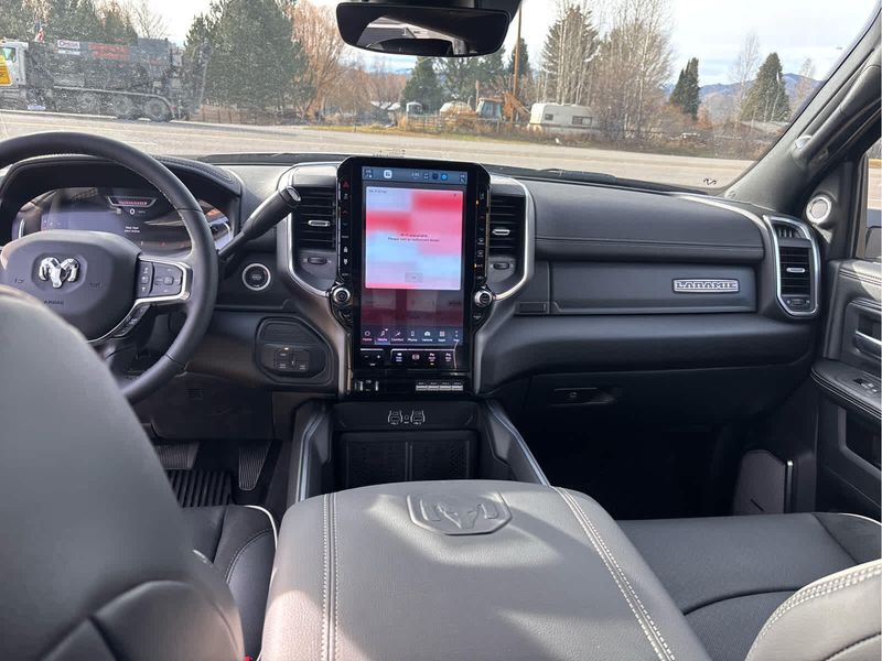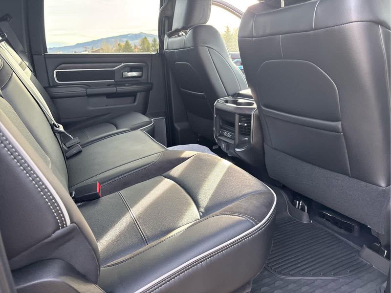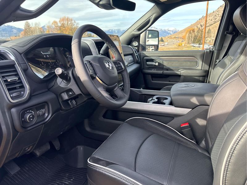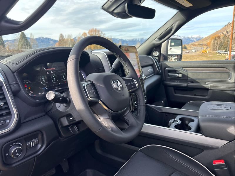 ENGINE: 6.7L I6 CUMMINS HO TURBO DIESEL Selective Catalytic Reduction (Urea), Dual 730 Amp Maintenance Free Batteries, GVWR: 11,800 lb, Cummins Turbo Diesel Badge, Heavy Duty Engine Cooling, Current Generation Engine Controller, Diesel Exhaust Brake, Supplemental Heater, 3.42 Axle Ratio, Front Bumper Sight Shields, Capless Fuel Fill w/o Discriminator, LARAMIE LEVEL 2 EQUIPMENT GROUP Rain Sensitive Windshield Wipers, Power Adjustable Pedals w/Memory, For Details Visit DriveUconnect.com, For More Info, Call 800-643-2112, Auto Dimming Exterior Mirrors, Foam Bottle Insert (Door Trim Panel), 14.4 Touchscreen Display, Power Heat Fold Memory Telescopic Mirrors, Radio: Uconnect 5 Nav w/14.4 Display, Remote Tailgate Release, 17 Speaker harman/kardon Premium Sound, #1 Seat Foam Cushion, Auto High Beam Headlamp Control, Exterior Mirrors w/Memory, 2nd Row In Floor Storage Bins, Auto Dimming Exterior Passenger Mirror, Auto Adjust In Reverse Exterior Mirrors, TOWING TECHNOLOGY GROUP CTR Stop Lamp w/Cargo View Camera, Surround View Camera System, Trailer Tire Pressure Monitoring System, Trailer Reverse Guidance, SAFETY GROUP Active Lane Management System, Auto High Beam Headlamp Control, Rain Sensitive Windshield Wipers, Drowsy Driver Detection, Traffic Sign Recognition, Adaptive Steering System, BED CONVENIENCE GROUP MOPAR Spray In Bedliner, LED Bed Lighting, MOPAR FRONT & REAR RUBBER FLOOR MATS, TRANSMISSION: 8-SPEED TORQUEFLITE HD AUTOMATIC 12.0 Single Rear Wheel Axle, BLACK, LEATHER TRIMMED BUCKET SEATS Bucket Seats, Dual Wireless Charging Pad, Full Length Upgraded Floor Console.