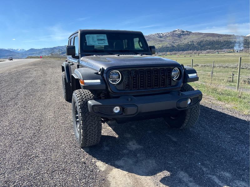 QUICK ORDER PACKAGE 22W WILLYS 2.0L I4 DOHC DI Turbo Engine w/ESS, 8-Speed Automatic 850RE Transmission, 7 & 4 Pin Wiring Harness, Conventional Differential Front Axle, Power Dome Dual Vented Hood, 4-Wheel Drive Swing Gate Decal, Black Grille w/Gloss Black Rings, Injection Molded Black Rear Bumper, Dana M210 Wide HD Tube Front Axle, Daytime Running Lamps LED Accents, Front LED Fog Lamps, LED Premium Reflector Headlamps, E-Locker Rear Axle, Corning Gorilla Glass, Security Alarm, Class II Receiver Hitch, Mold In Color Bumper w/Gloss Black, Advanced Brake Assist, Automatic Headlamps, Off-Road Plus Mode, Willys Hood Decal, Full Speed Forward Collision Warning Plus, Rock Protection Sill Rails, Power Heated Mirrors, Enhanced Adaptive Cruise Control, Auxiliary Switches, Dana M220 Wide Rear Axle, XTREME 35 TIRE PACKAGE LT315/70R17C 113/110S Tires, Wheel Flare Extensions, MOPAR Tire Relocation Kit, Anti-Lock 4-Wheel Disc Perf Brakes, 17 x 8 Machined Wheels w/Black Pockets, 4.56 Rear Axle Ratio, Injection Molded Black Rear Bumper, 35 Tire Suspension, MOPAR Hinge-Gate Reinforcement, Delete 4-Wheel Drive Swing Gate Decal, MOPAR Jack Spacer, Molded in Color Rubicon Highline Flare, 6,250 lbs GVWR, 8-SPEED AUTOMATIC 850RE TRANSMISSION Adaptive Cruise Control w/Stop, Anti-Lock 4-Wheel Disc Brakes, Dana M200 Rear Axle, Selec-Speed Control, BLACK 3-PIECE HARD TOP Freedom Panel Storage Bag, Rear Window Defroster, Rear Window Wiper/Washer, No Soft Top, CONVENIENCE GROUP Emergency/Assistance Call, 2-Door Passive Entry, Front Door Locks, Cluster 7.0 TFT Color Display, Universal Garage Door Opener, Heated Front Seats, Air Conditioning w/Auto Temp Control, Heated Steering Wheel, Air Filtering, ALPINE PREMIUM AUDIO SYSTEM, 2.0L I4 DOHC DI TURBO ENGINE W/ESS.