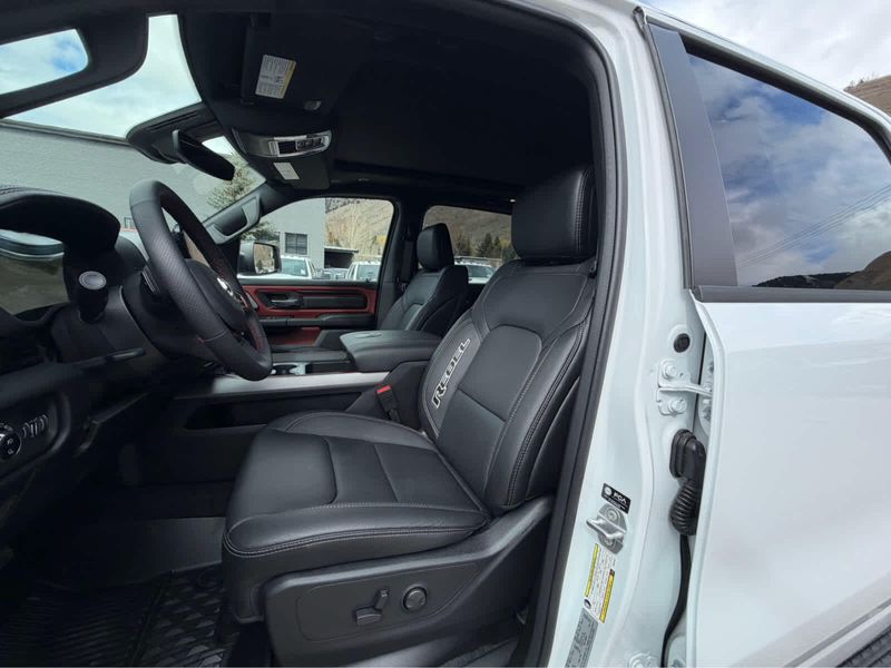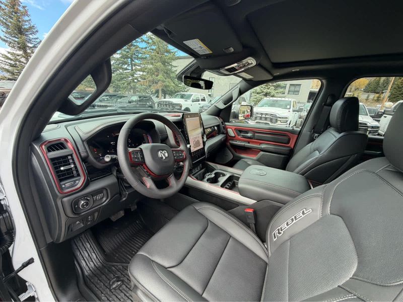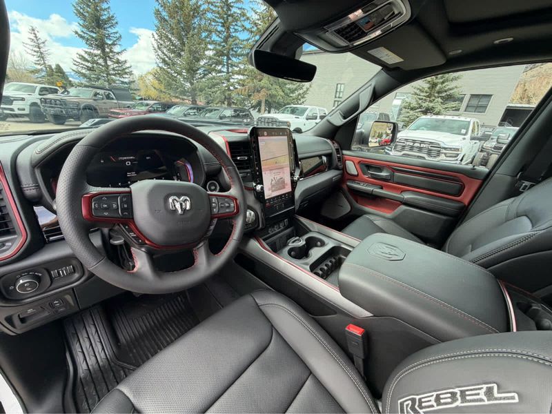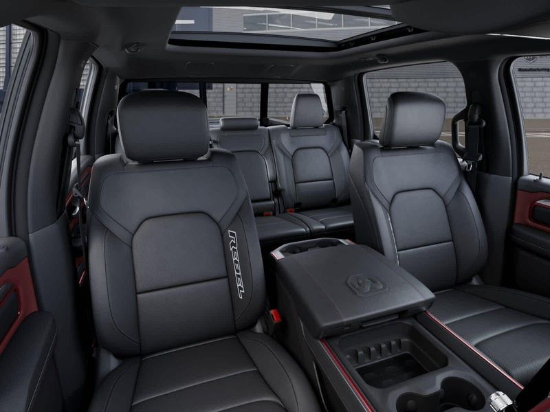 REBEL LEVEL 2 EQUIPMENT GROUP Power Adjustable Pedals w/Memory, Front Passenger Interactive Display, Power 2-Way Passenger Lumbar Adjust, Auto Power-Folding Mirrors, 115V Auxiliary Rear Power Outlet, Media Hub w/2 Charge Only USBs, Proximity Approach/Departure Lamps, Power Adjust 8-Way Front Passenger Seat, Security Alarm, Dual Wireless Charging Pad, harman/kardon 19 Speaker Premium Sound, Rear Window Defroster, Rain Sensitive Windshield Wipers, Auto Dim Exterior Driver Mirror, Accent Color Door Handles, Heated Second Row Seats, Black Painted Exterior Mirrors Caps, Exterior Mirrors Approach Lamps, Smartphone As A Key Capable, 14.4 Touchscreen Display, Accent Color Premium Power Mirrors, Exterior Mirrors w/Supplemental Signals, Exterior Mirrors Courtesy Lamps, Radio: Uconnect 5 Nav w/14.4, DUAL-PANE PANORAMIC SUNROOF Dome Dual LED Reading Lamp, RED/BLACK, LUX LEATHER TRIMMED BUCKET SEATS Power 2-Way Passenger Lumbar Adjust, Ventilated Front Seats, Power Adjust 8-Way Front Passenger Seat, MOPAR BLACK TUBULAR SIDE STEPS, BED UTILITY GROUP MOPAR Spray In Bedliner, MOPAR 4 Adjustable Cargo Tie-Down Hooks, Exterior 115V AC Outlet, TRANSMISSION: 8-SPEED AUTOMATIC (8HP75) (STD), ENGINE: 3.0L I6 HURRICANE SO TWIN TURBO ESS (STD).