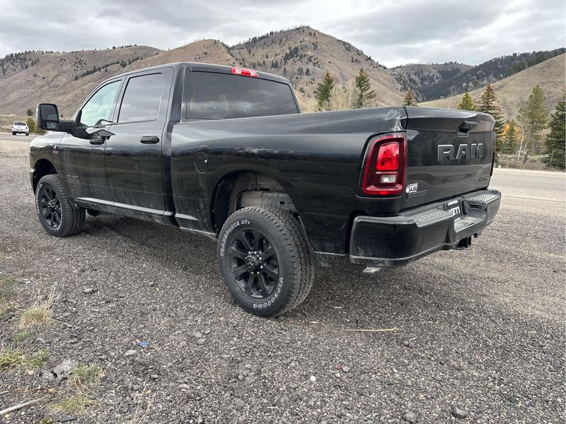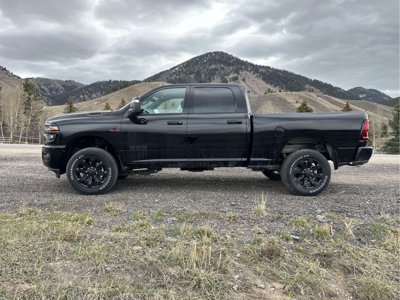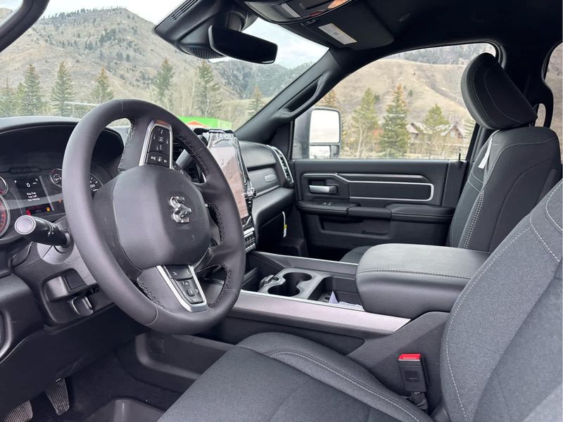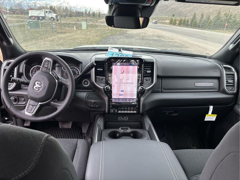 ENGINE: 6.7L I6 CUMMINS HO TURBO DIESEL Selective Catalytic Reduction (Urea), Dual 730 Amp Maintenance Free Batteries, Cummins Turbo Diesel Badge, Heavy Duty Engine Cooling, Diesel Exhaust Brake, Supplemental Heater, 3.42 Axle Ratio, Front Bumper Sight Shields, Capless Fuel Fill w/o Discriminator, GVWR: 11,040 lbs, BIG HORN LEVEL 1 PLUS EQUIPMENT GROUP Emergency Vehicle Alert System (EVAS), 12 Touchscreen Display, Glove Box Lamp, Auto Power-Folding Mirrors, Footwell Courtesy Lamp, Anti-Spin Differential Rear Axle, MOPAR Deployable Bed Step, Alexa Built-In, Forward & Reverse Utility Lights, Locking Lower Glove Box, Remote Start System, 9 Alpine Speakers w/Subwoofer, Disassociated Touchscreen Display, Dual Glove Boxes, 2nd Row In Floor Storage Bins, Rear View Auto Dim Mirror, Rear Dome w/On/Off Switch Lamp, LED Bed Lighting, GPS Navigation, SiriusXM w/360L, Connected Travel & Traffic Services, Foam Bottle Insert (Door Trim Panel), Big Horn IP Badge, Off-Road Info Pages, Trailer Tow Pages, HD Radio, Radio: Uconnect 5 Nav w/12.0 Display, Power Heated Folding Telescopic Mirrors, Steering Wheel Mounted, NIGHT EDITION Gloss Black Nostrils/Mic Black Grille, Tires: LT285/60R20E OWL On/Off Road, Black Exterior Truck Badging, Wheels: 20 x 8.0 Black Painted Aluminum, Body Color Grille-Surround, Black Interior Accents, Black Wheel Center Hub, Painted Front Bumper, Painted Rear Bumper, HEATED SEATS & WHEEL GROUP Heated Steering Wheel, Heated Front Seats, BLACK, PREMIUM CLOTH BUCKET SEATS Bucket Seats, Power Adjust 8-Way Driver Seat, Folding Flat Load Floor Storage, Rear 60/40 Folding Seat, Front Seat Back Map Pockets, Power 2-Way Driver Lumbar Adjust, Full Length Upgraded Floor Console, MOPAR FRONT & REAR RUBBER FLOOR MATS, TRANSMISSION: 8-SPEED TORQUEFLITE HD AUTOMATIC.