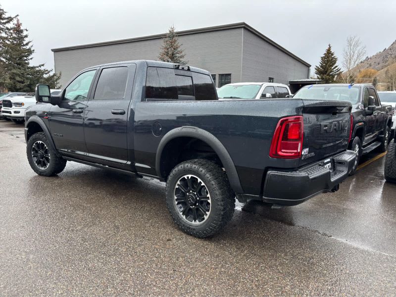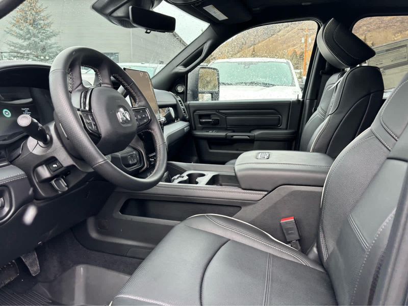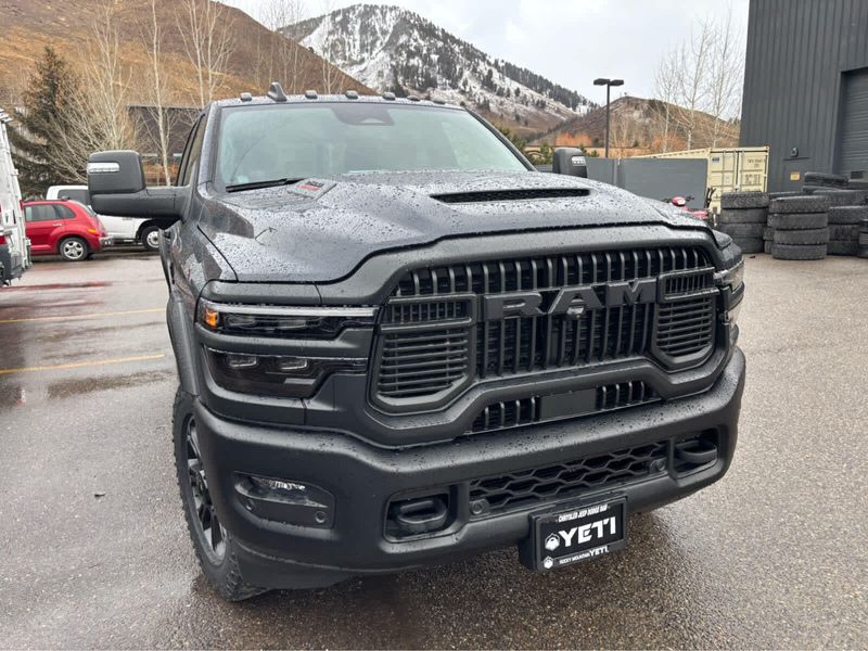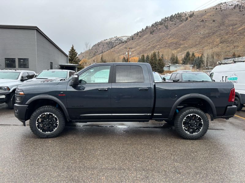 ENGINE: 6.7L I6 CUMMINS HO TURBO DIESEL Selective Catalytic Reduction (Urea), Dual 730 Amp Maintenance Free Batteries, Cummins Turbo Diesel Badge, Heavy Duty Engine Cooling, Diesel Exhaust Brake, Supplemental Heater, 3.42 Axle Ratio, Front Bumper Sight Shields, Fuel Tank Brush Guard, Capless Fuel Fill w/o Discriminator, GVWR: 11,040 lbs, REBEL LEVEL 2 EQUIPMENT GROUP Power Adjustable Pedals w/Memory, Front Passenger Interactive Display, Power Deployable Running Boards, MOPAR Deployable Bed Step, Premium Overhead Console, Leather Wrapped Shift Control, 17 Speaker harman/kardon Premium Sound, LED Interior Lighting, LED Dome Lamp w/On/Off Switch, Universal Garage Door Opener, Sun Visors w/Illuminated Vanity Mirrors, CTR Stop Lamp w/Cargo View Camera, Rain Sensitive Windshield Wipers, LED Bed Lighting, Body Color Door Handles, Overhead LED Lamps, Auto Dim Exterior Mirror, Leather Wrapped Grab Handle, 14.4 Touchscreen Display, Power Heated Fold Telescopic Mirrors w/Memory, Sport Performance Hood, Radio: Uconnect 5 Nav w/14.4 Display, MOPAR Spray In Bedliner, Front Door Locks 2-Door Passive Entry, Auto High Beam Headlamp, SAFETY GROUP Active Lane Management System, Auto High Beam Headlamp Control, Rain Sensitive Windshield Wipers, Drowsy Driver Detection, Traffic Sign Recognition, Adaptive Steering System, TOWING TECHNOLOGY GROUP Surround View Camera System, Trailer Tire Pressure Monitoring System, Trailer Reverse Guidance, POWER SUNROOF, TRANSMISSION: 8-SPEED TORQUEFLITE HD AUTOMATIC, TOW-MODE DIGITAL REARVIEW MIRROR PACKAGE Digital Rearview Mirror, Tow-Mode Camera (Wired).