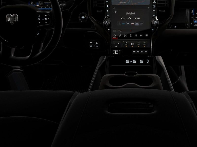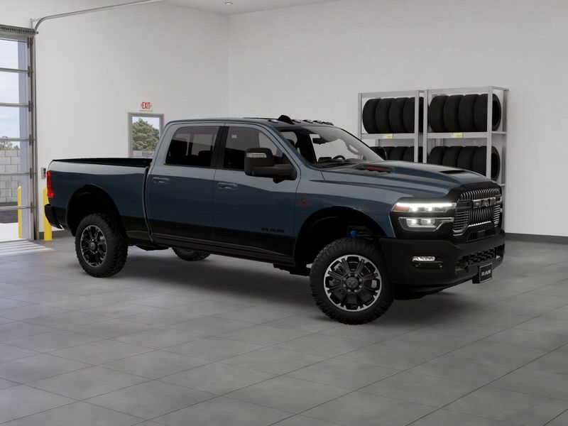 ENGINE: 6.7L I6 CUMMINS HO TURBO DIESEL Selective Catalytic Reduction (Urea), Dual 730 Amp Maintenance Free Batteries, Cummins Turbo Diesel Badge, Heavy Duty Engine Cooling, Diesel Exhaust Brake, Supplemental Heater, 3.42 Axle Ratio, Front Bumper Sight Shields, Fuel Tank Brush Guard, Capless Fuel Fill w/o Discriminator, GVWR: 11,040 lbs, REBEL LEVEL 2 EQUIPMENT GROUP Power Adjustable Pedals w/Memory, Front Passenger Interactive Display, Power Deployable Running Boards, MOPAR Deployable Bed Step, Premium Overhead Console, Leather Wrapped Shift Control, 17 Speaker harman/kardon Premium Sound, LED Interior Lighting, LED Dome Lamp w/On/Off Switch, Universal Garage Door Opener, Sun Visors w/Illuminated Vanity Mirrors, CTR Stop Lamp w/Cargo View Camera, Rain Sensitive Windshield Wipers, LED Bed Lighting, Body Color Door Handles, Overhead LED Lamps, Auto Dim Exterior Mirror, Leather Wrapped Grab Handle, 14.4 Touchscreen Display, Power Heated Fold Telescopic Mirrors w/Memory, Sport Performance Hood, Radio: Uconnect 5 Nav w/14.4 Display, MOPAR Spray In Bedliner, Front Door Locks 2-Door Passive Entry, Auto High Beam Headlamp, SAFETY GROUP Active Lane Management System, Auto High Beam Headlamp Control, Rain Sensitive Windshield Wipers, Drowsy Driver Detection, Traffic Sign Recognition, Adaptive Steering System, TOWING TECHNOLOGY GROUP Surround View Camera System, Trailer Tire Pressure Monitoring System, Trailer Reverse Guidance, POWER SUNROOF, TOW-MODE DIGITAL REARVIEW MIRROR PACKAGE Digital Rearview Mirror, Tow-Mode Camera (Wired), TRANSMISSION: 8-SPEED TORQUEFLITE HD AUTOMATIC.