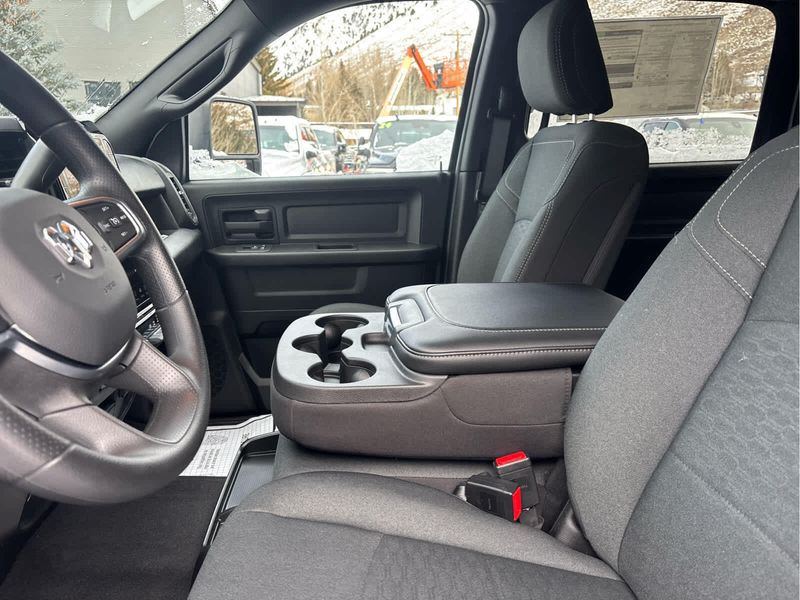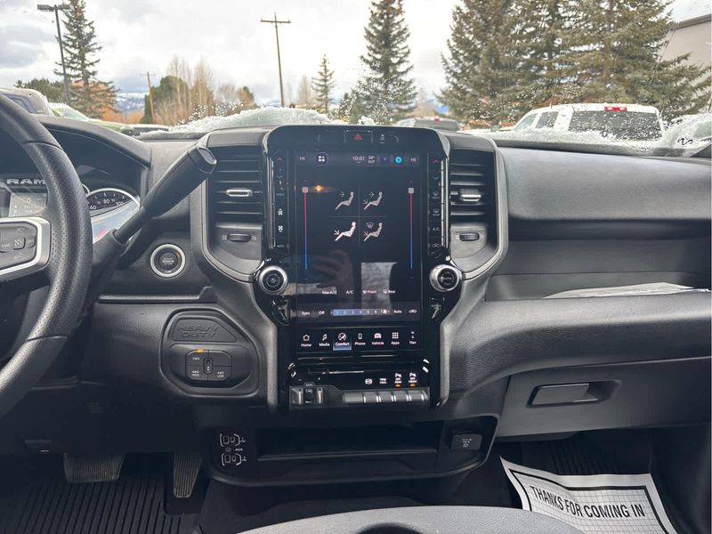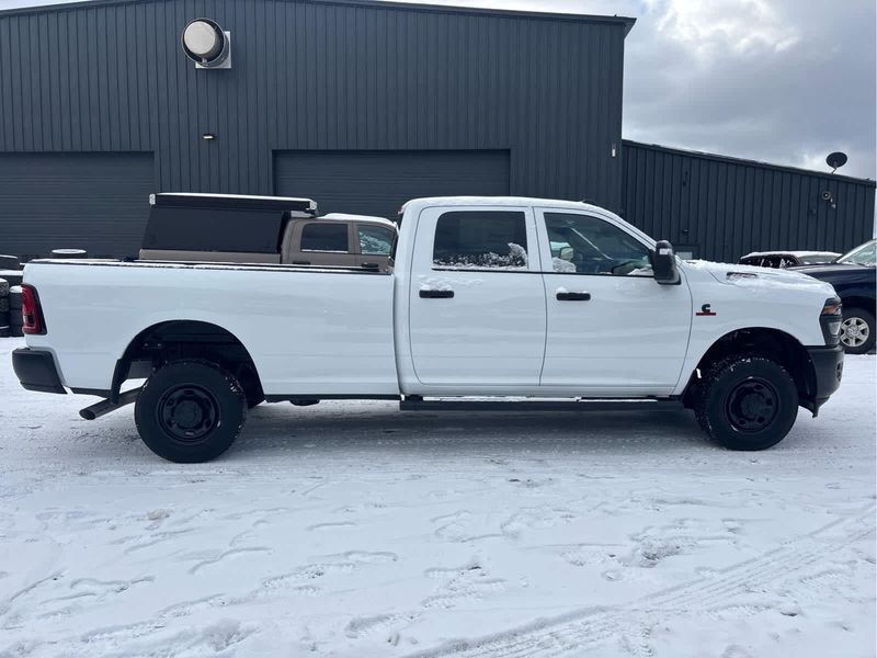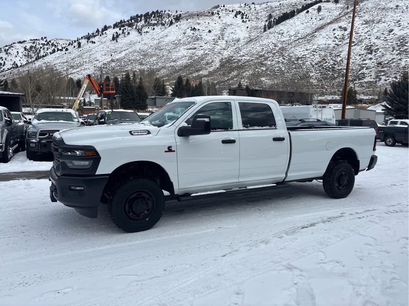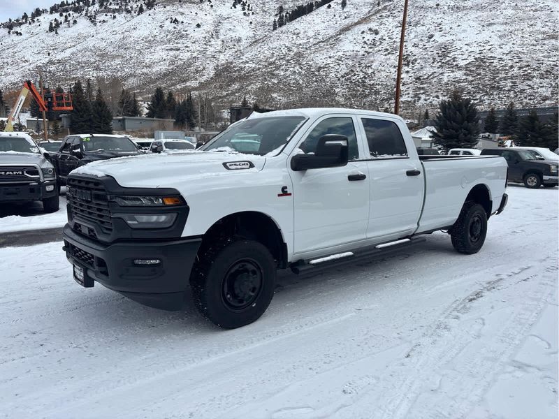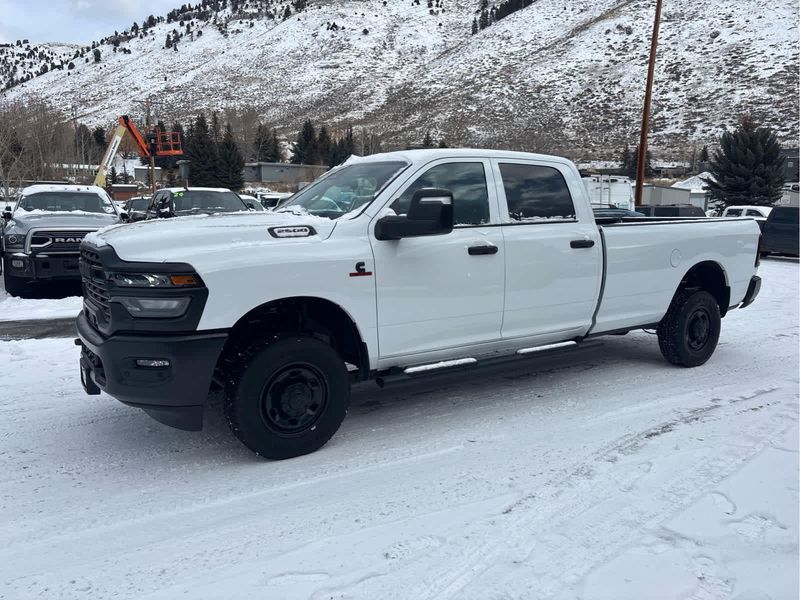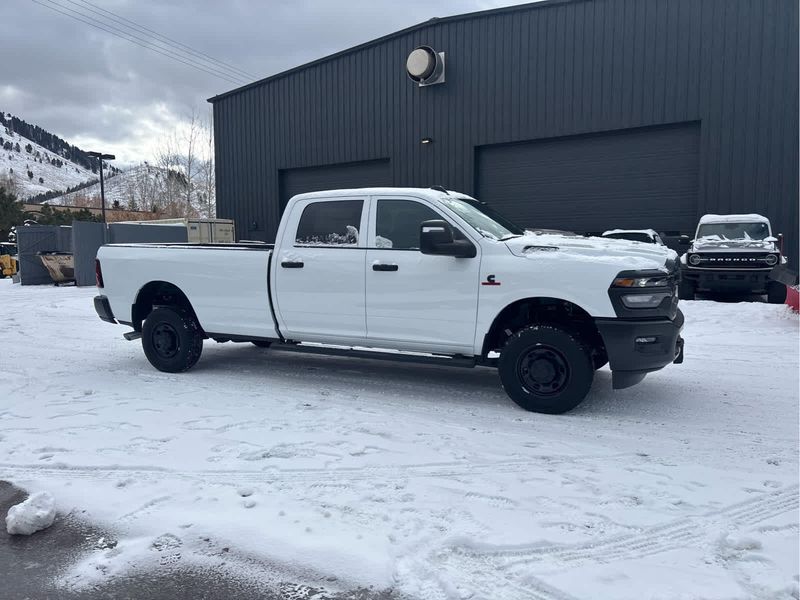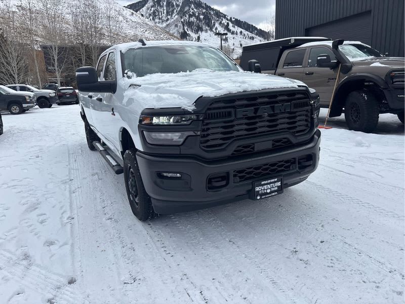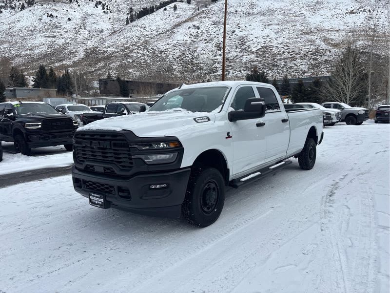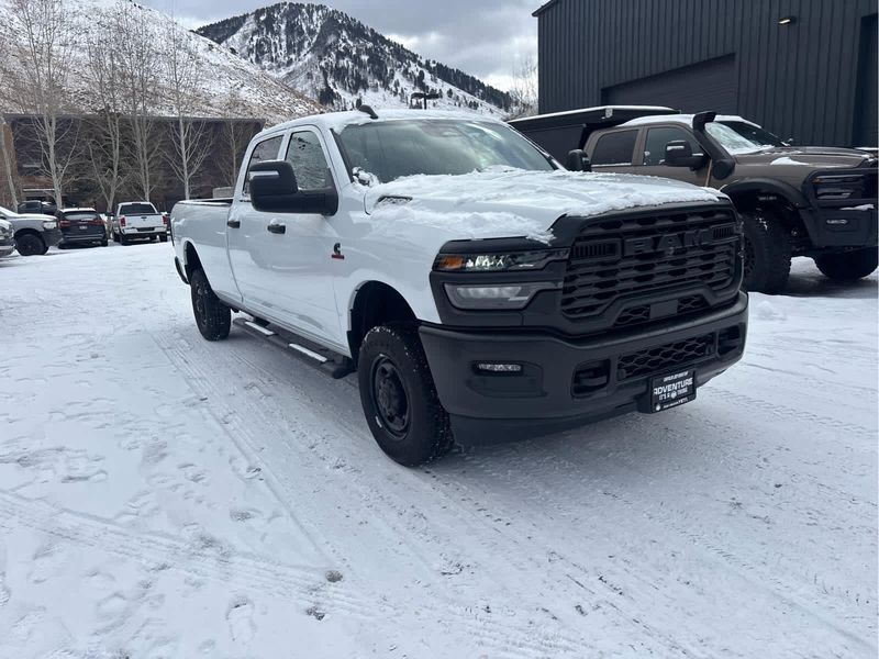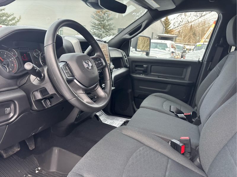 ENGINE: 6.7L I6 CUMMINS HO TURBO DIESEL Selective Catalytic Reduction (Urea), Dual 730 Amp Maintenance Free Batteries, Cummins Turbo Diesel Badge, Heavy Duty Engine Cooling, Diesel Exhaust Brake, Supplemental Heater, 3.42 Axle Ratio, Front Bumper Sight Shields, Capless Fuel Fill w/o Discriminator, GVWR: 11,040 lbs, TRADESMAN LEVEL 1 EQUIPMENT GROUP Convenience Group, Emergency Vehicle Alert System (EVAS), 12 Touchscreen Display, Auto Power-Folding Mirrors, Anti-Spin Differential Rear Axle, Mirror Running Lights, Exterior 115V AC Outlet, Alexa Built-In, Power-Adjustable Convex Aux Mirrors, Forward & Reverse Utility Lights, Disassociated Touchscreen Display, 115V Auxiliary Front Power Outlet, Rear View Auto Dim Mirror, Rear Power Sliding Window, Tinted Acoustic Windshield Glass, GPS Navigation, Exterior Mirrors w/Heating Element, MOPAR Black Tubular Side Steps, SiriusXM w/360L, Connected Travel & Traffic Services, Carpet Floor Covering, Off-Road Info Pages, Trailer Tow Pages, 400W Inverter, HD Radio, Power Heated Folding Telescope Mirrors, Radio: Uconnect 5 Nav w/12.0 Display, Exterior Mirrors, BED CONVENIENCE GROUP MOPAR Spray In Bedliner, LED Bed Lighting, TRANSMISSION: 8-SPEED TORQUEFLITE HD AUTOMATIC, BLACK, CLOTH 40/20/40 BENCH SEAT.