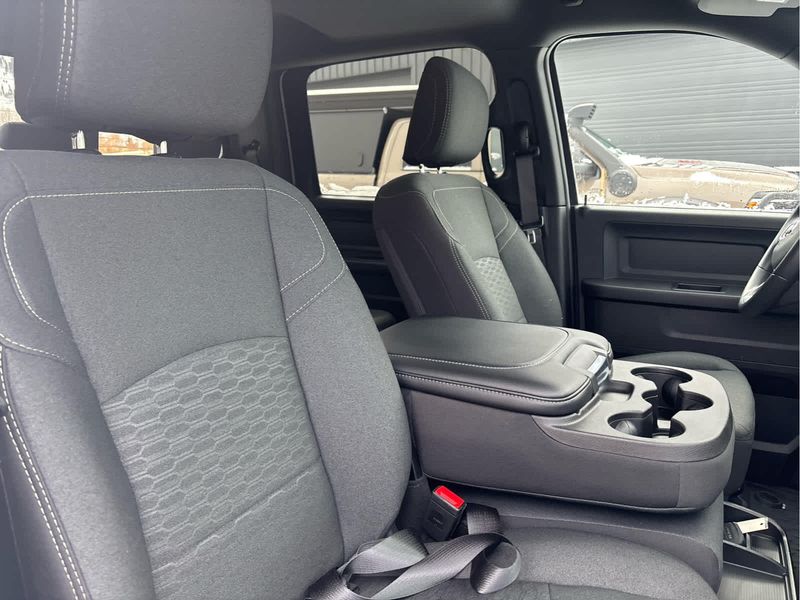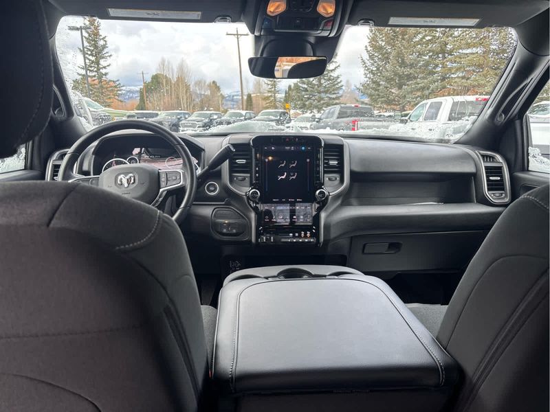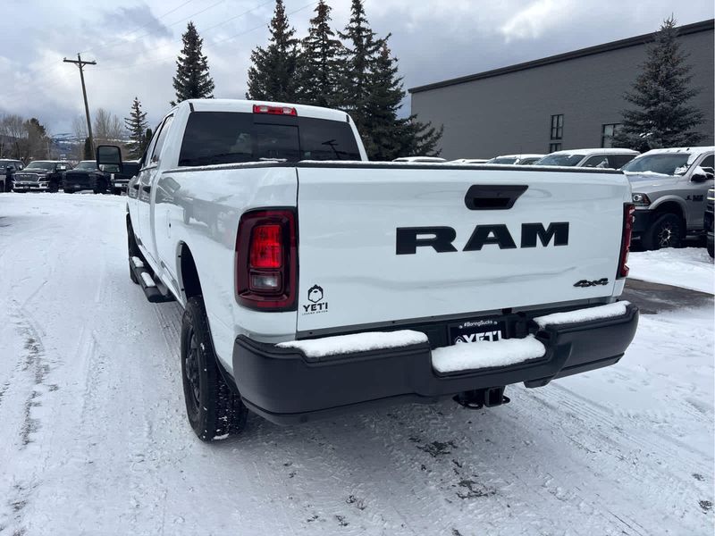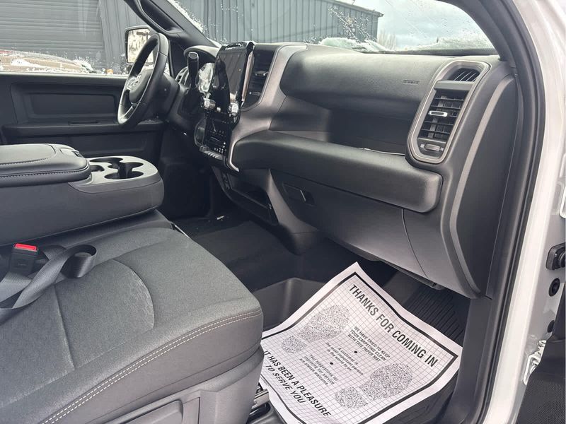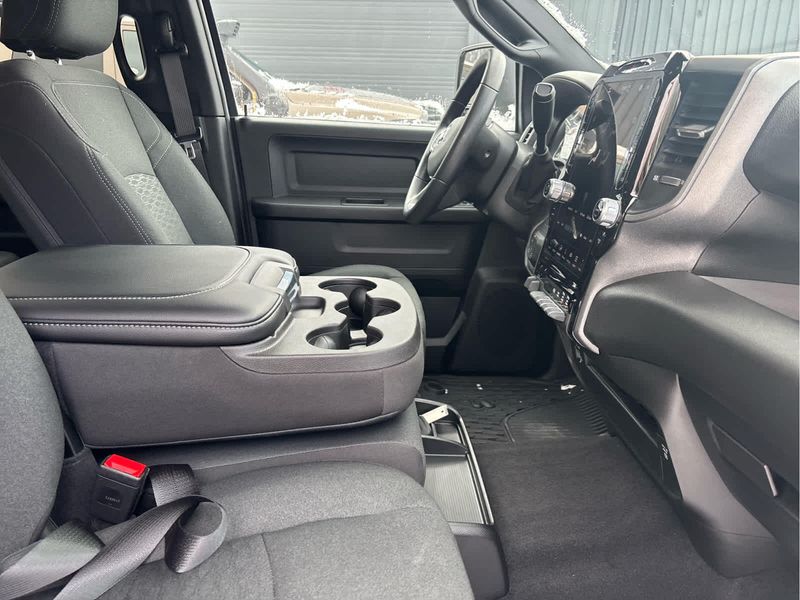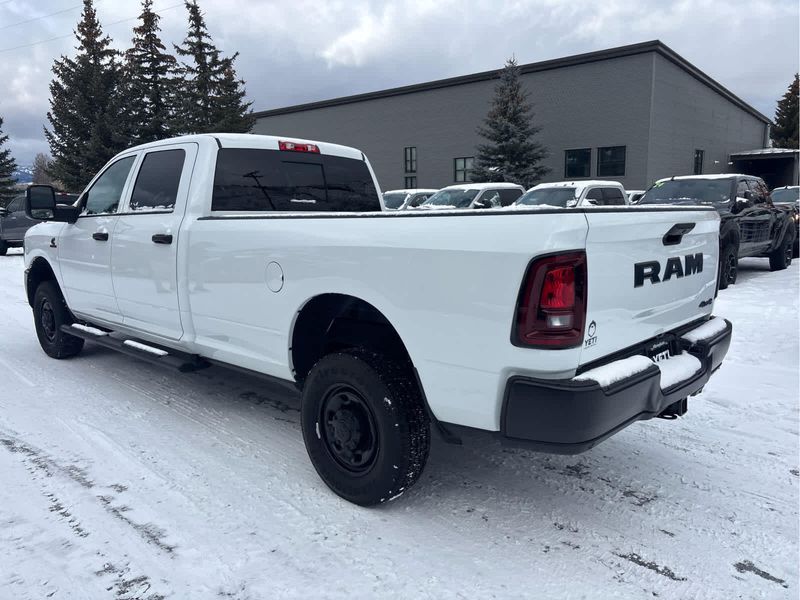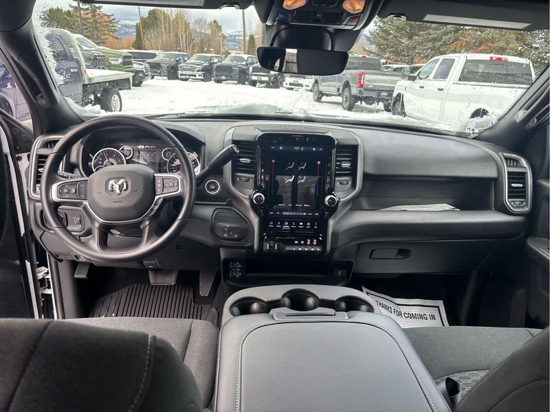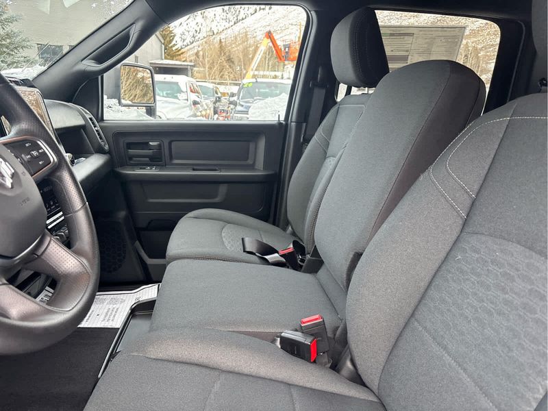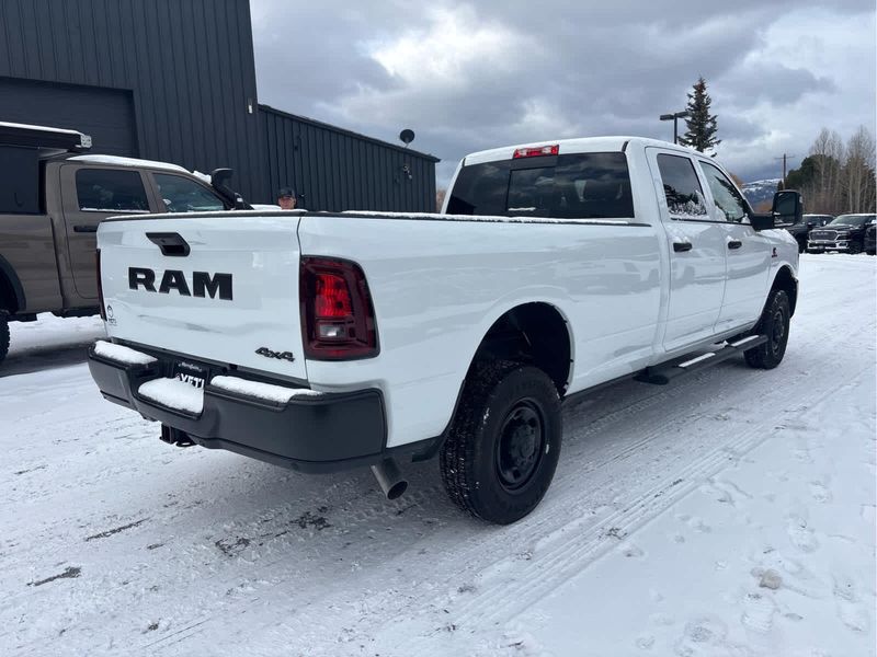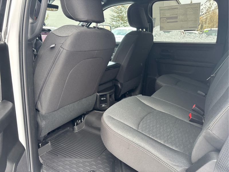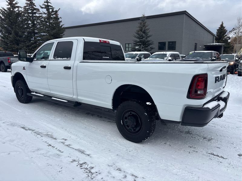 ENGINE: 6.7L I6 CUMMINS HO TURBO DIESEL Selective Catalytic Reduction (Urea), Dual 730 Amp Maintenance Free Batteries, Cummins Turbo Diesel Badge, Heavy Duty Engine Cooling, Diesel Exhaust Brake, Supplemental Heater, 3.42 Axle Ratio, Front Bumper Sight Shields, Capless Fuel Fill w/o Discriminator, GVWR: 11,040 lbs, TRADESMAN LEVEL 1 EQUIPMENT GROUP Convenience Group, Emergency Vehicle Alert System (EVAS), 12 Touchscreen Display, Auto Power-Folding Mirrors, Anti-Spin Differential Rear Axle, Mirror Running Lights, Exterior 115V AC Outlet, Alexa Built-In, Power-Adjustable Convex Aux Mirrors, Forward & Reverse Utility Lights, Disassociated Touchscreen Display, 115V Auxiliary Front Power Outlet, Rear View Auto Dim Mirror, Rear Power Sliding Window, Tinted Acoustic Windshield Glass, GPS Navigation, Exterior Mirrors w/Heating Element, MOPAR Black Tubular Side Steps, SiriusXM w/360L, Connected Travel & Traffic Services, Carpet Floor Covering, Off-Road Info Pages, Trailer Tow Pages, 400W Inverter, HD Radio, Power Heated Folding Telescope Mirrors, Radio: Uconnect 5 Nav w/12.0 Display, Exterior Mirrors, BED CONVENIENCE GROUP MOPAR Spray In Bedliner, LED Bed Lighting, TRANSMISSION: 8-SPEED TORQUEFLITE HD AUTOMATIC, BLACK, CLOTH 40/20/40 BENCH SEAT.