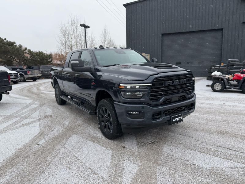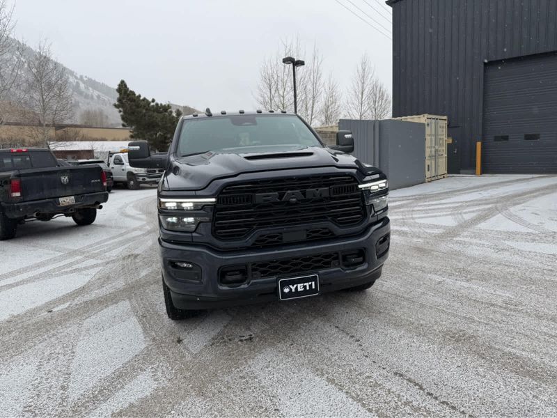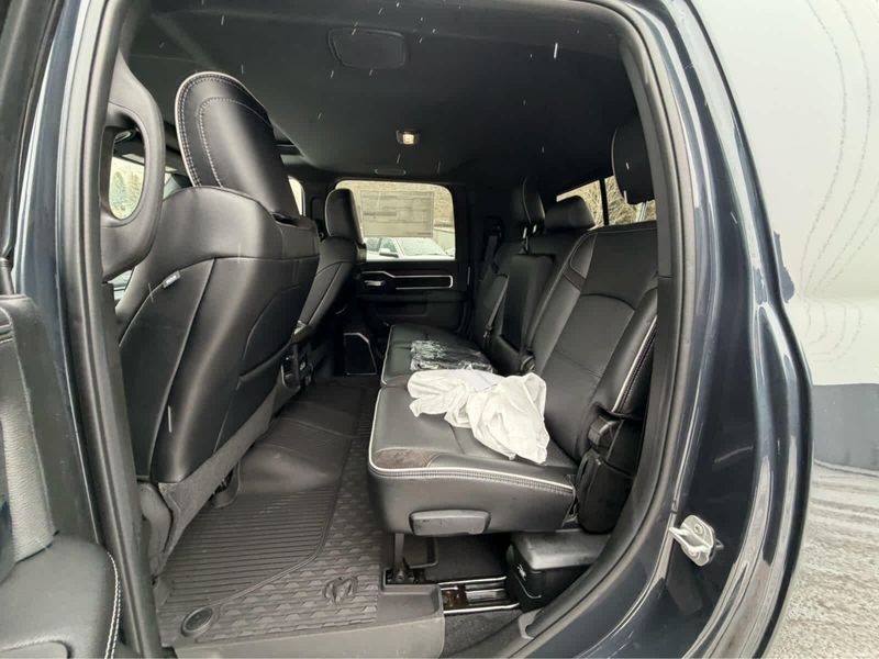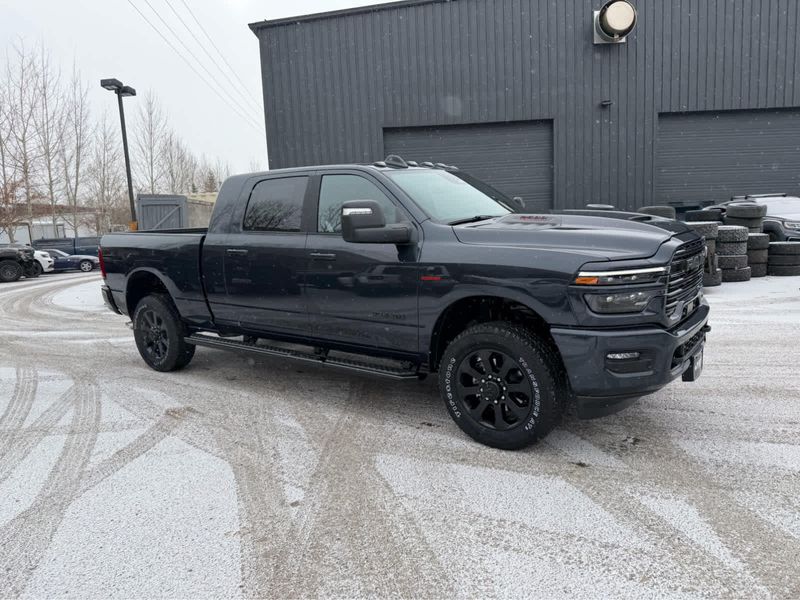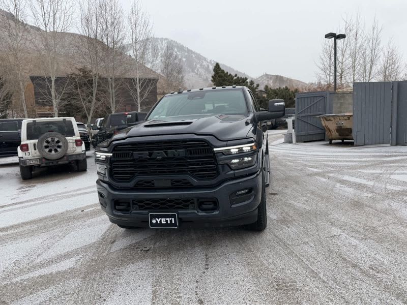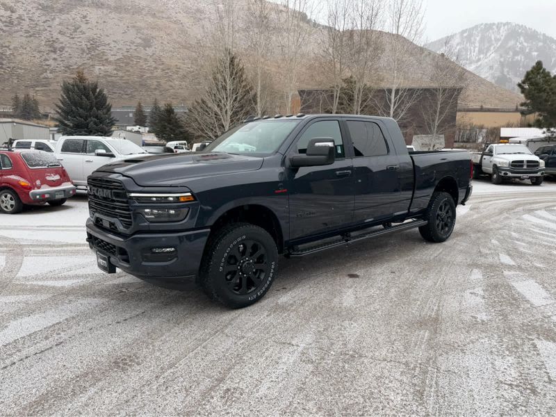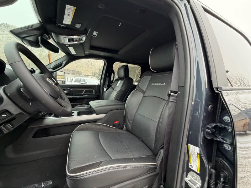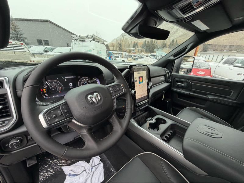 NIGHT EDITION Tires: LT285/60R20E OWL On/Off Road, Black Exterior Truck Badging, Wheels: 20 x 8 Black Painted Aluminum, Gloss Black Grille Billets/Accents, Body Color Grille Surround, Sport Performance Hood, LARAMIE LEVEL 1 PLUS EQUIPMENT GROUP Center Stop Lamp w/Cargo View Camera, Rain Sensitive Windshield Wipers, Power Adjustable Pedals w/Memory, LED Bed Lighting, Traffic Sign Recognition, Adaptive Steering System, Auto Dim Exterior Mirror, Anti-Spin Differential Rear Axle, Heated Second Row Seats, Drowsy Driver Detection, MOPAR Deployable Bed Step, Foam Bottle Insert (Door Trim Panel), Active Lane Management System, Power Heated Fold Telescope Mirrors w/Memory, MOPAR Spray In Bedliner, Remote Tailgate Release, Auto High Beam Headlamp Control, Exterior Mirrors w/Memory, Auto Dim Exterior Passenger Mirror, Auto Adjust In Reverse Exterior Mirrors, POWER SUNROOF, PAINTED FLAT WHEEL-TO-WHEEL SIDE STEPS, MOPAR FRONT & REAR RUBBER FLOOR MATS, TRANSMISSION: 8-SPEED TORQUEFLITE HD AUTOMATIC (STD), ENGINE: 6.7L I6 CUMMINS HO TURBO DIESEL (STD), BLACK, LEATHER TRIMMED BUCKET SEATS Bucket Seats, Dual Wireless Charging Pad, Full Length Upgraded Floor Console.