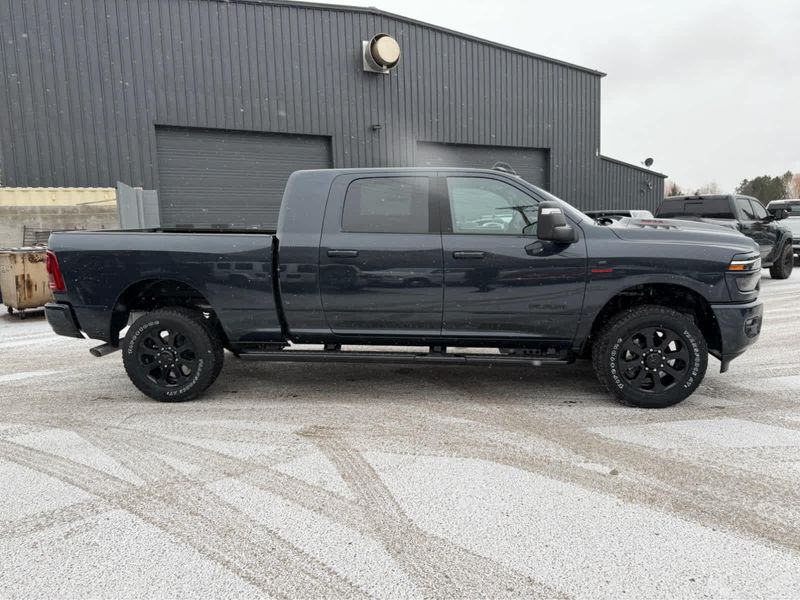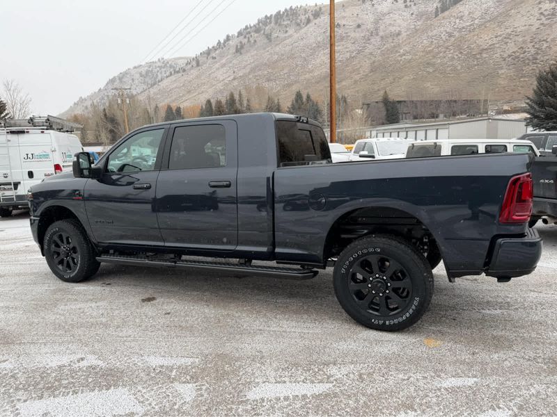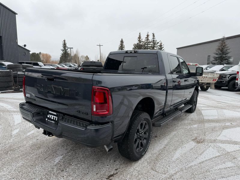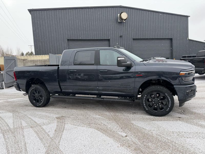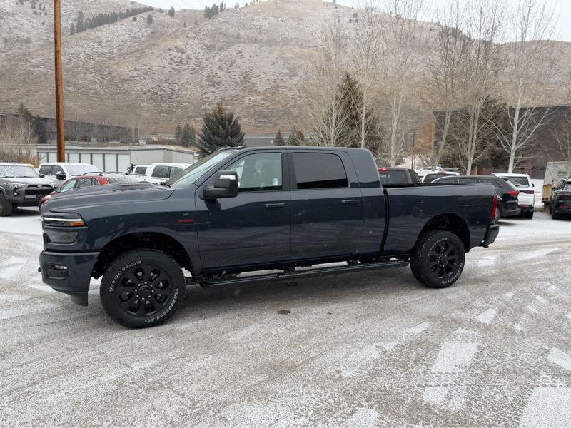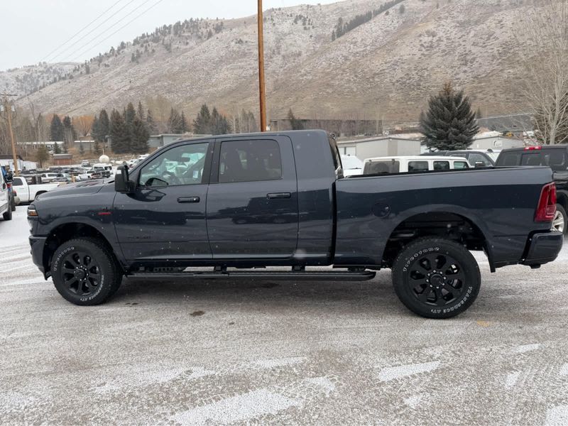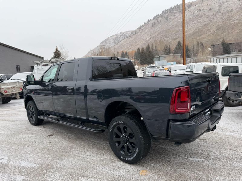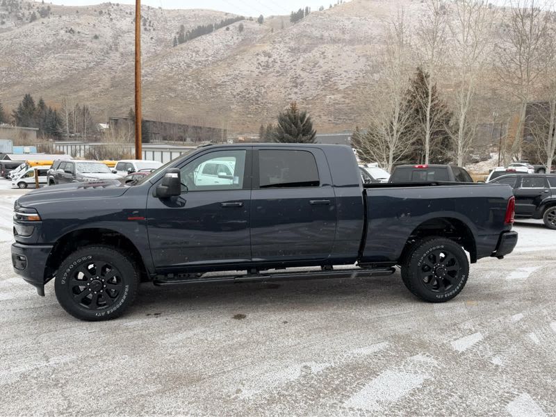 NIGHT EDITION Tires: LT285/60R20E OWL On/Off Road, Black Exterior Truck Badging, Wheels: 20 x 8 Black Painted Aluminum, Gloss Black Grille Billets/Accents, Body Color Grille Surround, Sport Performance Hood, LARAMIE LEVEL 1 PLUS EQUIPMENT GROUP Center Stop Lamp w/Cargo View Camera, Rain Sensitive Windshield Wipers, Power Adjustable Pedals w/Memory, LED Bed Lighting, Traffic Sign Recognition, Adaptive Steering System, Auto Dim Exterior Mirror, Anti-Spin Differential Rear Axle, Heated Second Row Seats, Drowsy Driver Detection, MOPAR Deployable Bed Step, Foam Bottle Insert (Door Trim Panel), Active Lane Management System, Power Heated Fold Telescope Mirrors w/Memory, MOPAR Spray In Bedliner, Remote Tailgate Release, Auto High Beam Headlamp Control, Exterior Mirrors w/Memory, Auto Dim Exterior Passenger Mirror, Auto Adjust In Reverse Exterior Mirrors, POWER SUNROOF, PAINTED FLAT WHEEL-TO-WHEEL SIDE STEPS, MOPAR FRONT & REAR RUBBER FLOOR MATS, TRANSMISSION: 8-SPEED TORQUEFLITE HD AUTOMATIC (STD), ENGINE: 6.7L I6 CUMMINS HO TURBO DIESEL (STD), BLACK, LEATHER TRIMMED BUCKET SEATS Bucket Seats, Dual Wireless Charging Pad, Full Length Upgraded Floor Console.
