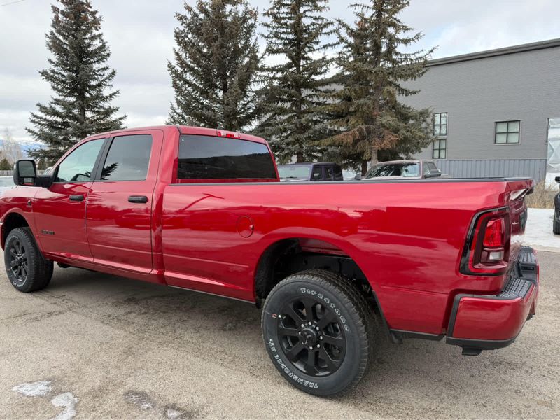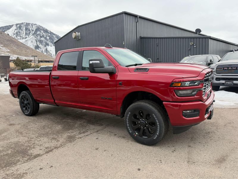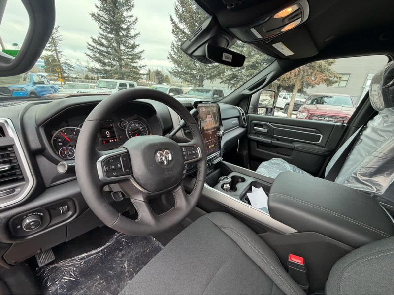 ENGINE: 6.7L I6 CUMMINS HO TURBO DIESEL Selective Catalytic Reduction (Urea), Dual 730 Amp Maintenance Free Batteries, Cummins Turbo Diesel Badge, Heavy Duty Engine Cooling, Current Generation Engine Controller, Diesel Exhaust Brake, Supplemental Heater, 3.42 Axle Ratio, Front Bumper Sight Shields, Capless Fuel Fill w/o Discriminator, BIG HORN LEVEL 1 PLUS EQUIPMENT GROUP For Details Visit DriveUconnect.com, For More Info, Call 800-643-2112, Emergency Vehicle Alert System (EVAS), 12 Touchscreen Display, Glove Box Lamp, Auto Power-Folding Mirrors, Footwell Courtesy Lamp, MOPAR Deployable Bed Step, Alexa Built-In, Forward & Reverse Utility Lights, Locking Lower Glove Box, Remote Start System, 9 Alpine Speakers w/Subwoofer, Disassociated Touchscreen Display, Dual Glove Boxes, 2nd Row In Floor Storage Bins, Rear View Auto Dim Mirror, Rear Dome w/On/Off Switch Lamp, LED Bed Lighting, GPS Navigation, SiriusXM w/360L, Connected Travel & Traffic Services, Foam Bottle Insert (Door Trim Panel), Big Horn IP Badge, Off-Road Information Pages, Trailer Tow Pages, HD Radio, Radio: Uconnect 5 Nav w/12.0 Display, Power Heated Fold, HEATED SEATS & WHEEL GROUP Heated Steering Wheel, Heated Front Seats, BLACK, PREMIUM CLOTH BUCKET SEATS Bucket Seats, Rear 60/40 Folding Seat, Power Adjust 8-Way Driver Seat, Folding Flat Load Floor Storage, Front Seat Back Map Pockets, Power 2-Way Driver Lumbar Adjust, Full Length Upgraded Floor Console, MOPAR FRONT & REAR RUBBER FLOOR MATS, TRANSMISSION: 8-SPEED TORQUEFLITE HD AUTOMATIC.