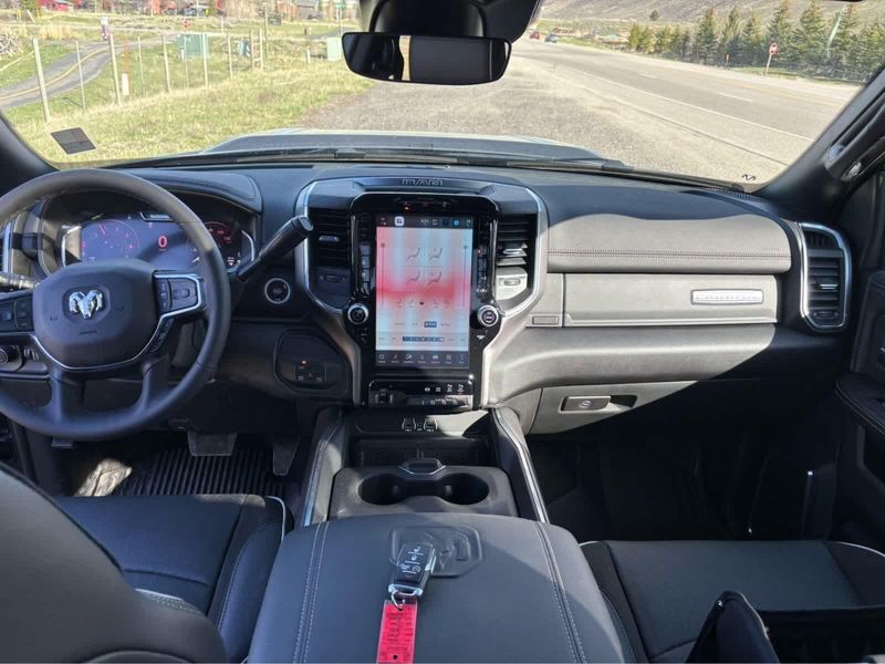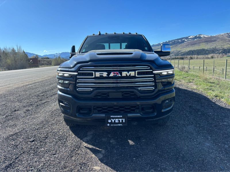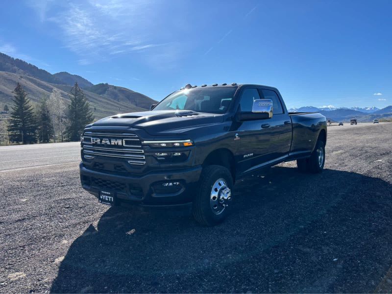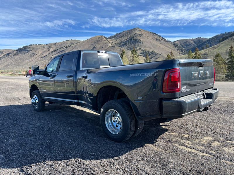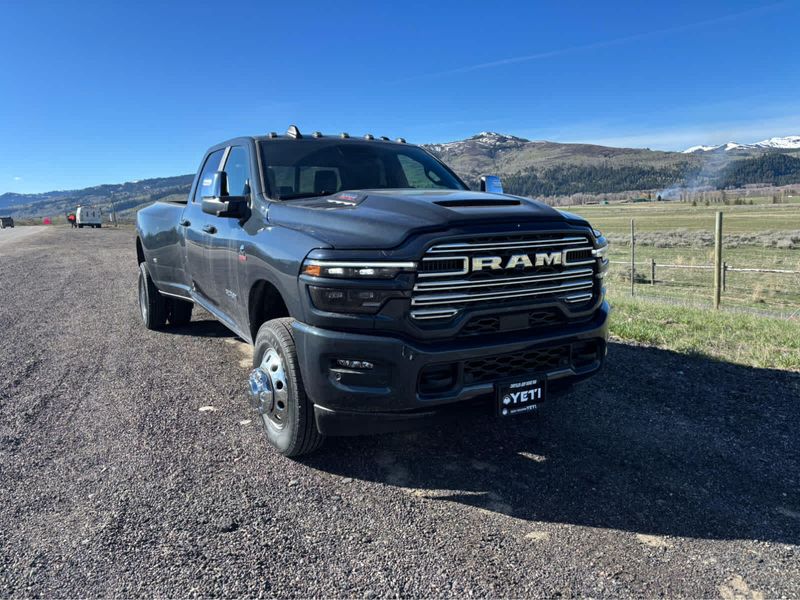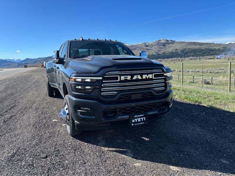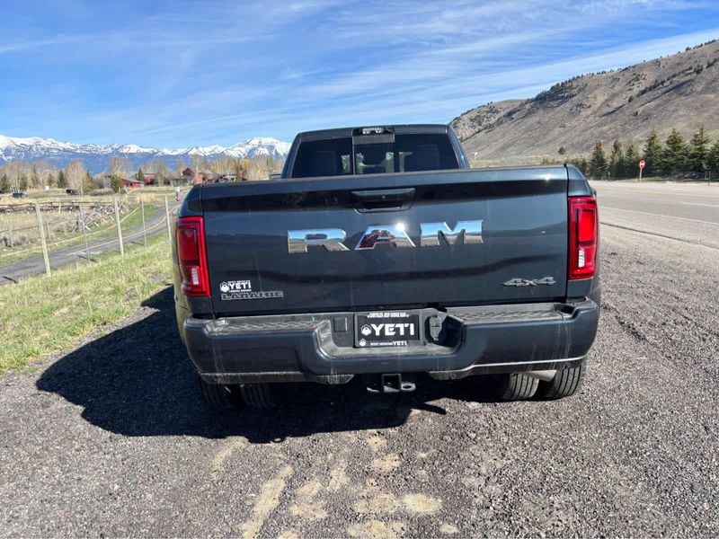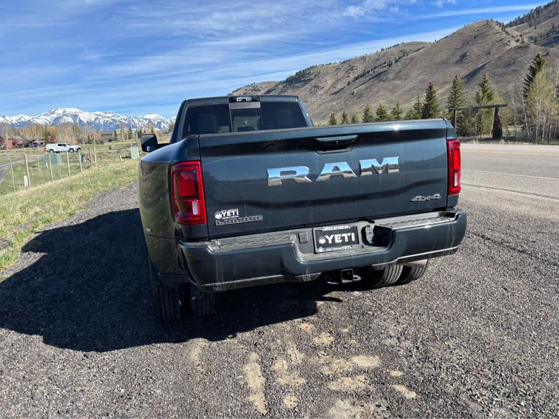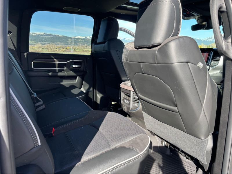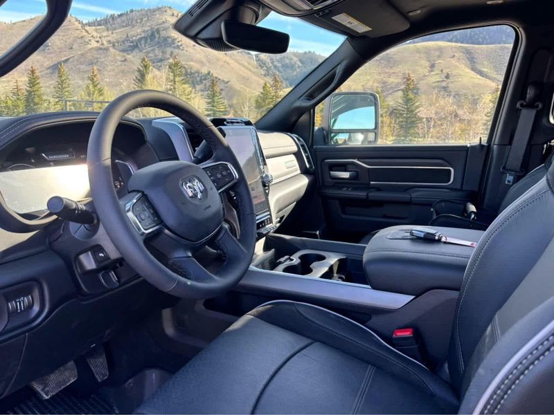 ENGINE: 6.7L I6 CUMMINS HO TURBO DIESEL Selective Catalytic Reduction (Urea), Dual 730 Amp Maintenance Free Batteries, Cummins Turbo Diesel Badge, Heavy Duty Engine Cooling, Current Generation Engine Controller, Diesel Exhaust Brake, Supplemental Heater, 3.42 Axle Ratio, Front Bumper Sight Shields, Capless Fuel Fill w/o Discriminator, LARAMIE LEVEL 1 PLUS EQUIPMENT GROUP CTR Stop Lamp w/Cargo View Camera, Rain Sensitive Windshield Wipers, Power Adjustable Pedals w/Memory, LED Bed Lighting, Traffic Sign Recognition, Adaptive Steering System, Auto Dimming Exterior Mirrors, Drowsy Driver Detection, MOPAR Deployable Bed Step, Foam Bottle Insert (Door Trim Panel), Active Lane Management System, Power Heat Fold Memory Telescopic Mirrors, MOPAR Spray In Bedliner, Remote Tailgate Release, Auto High Beam Headlamp Control, Exterior Mirrors w/Memory, 2nd Row In Floor Storage Bins, Auto Dimming Exterior Passenger Mirror, Auto Adjust In Reverse Exterior Mirrors, DUAL REAR WHEELS Clearance Lamps, Tires: LT235/80R17E BSW All Season, 17 Steel Spare Wheel, Box & Rear Fender Clearance Lamps, Center Hub, 6000# Front Axle w/Hub Ext, Wheels: 17 x 6.0 Polished Aluminum, Nexen Brand Tires, GVWR: 14,000 lb, POWER SUNROOF, TRANSMISSION: 8-SPEED TORQUEFLITE HD AUTOMATIC, BLACK, LEATHER TRIMMED BUCKET SEATS Bucket Seats, Dual Wireless Charging Pad, Ventilated Front Seats, Radio/Driver Seat/Mirrors/Pedals Memory, Full Length Upgraded Floor Console.
