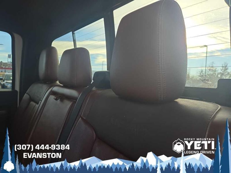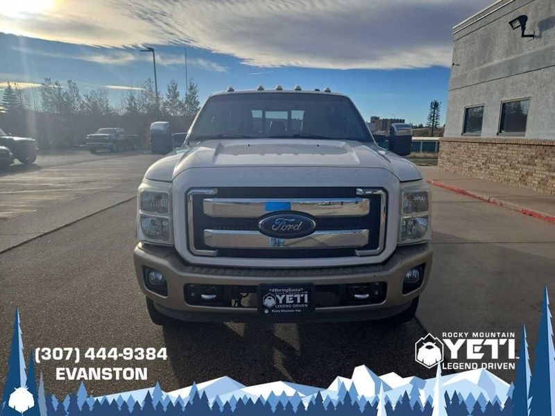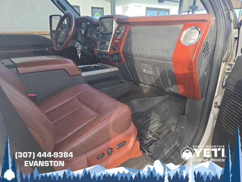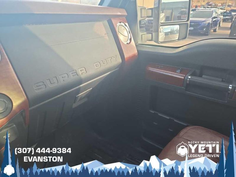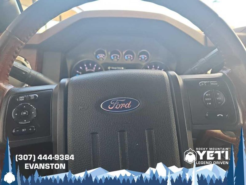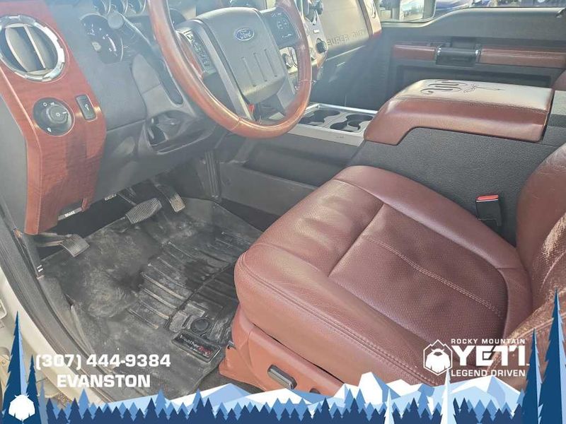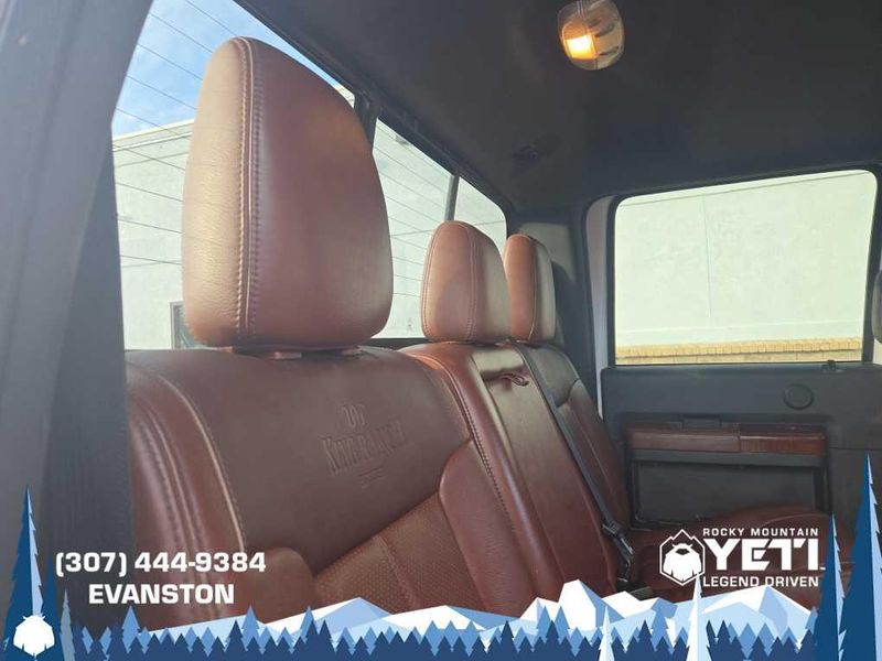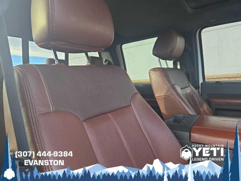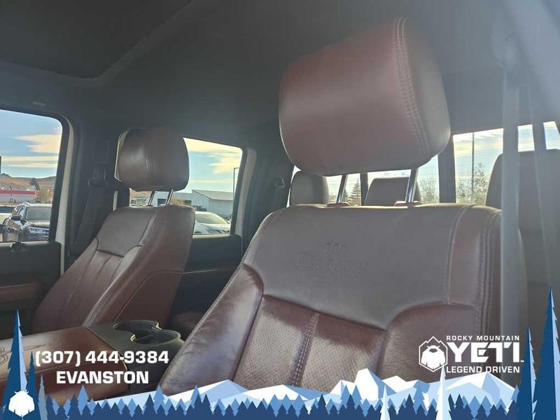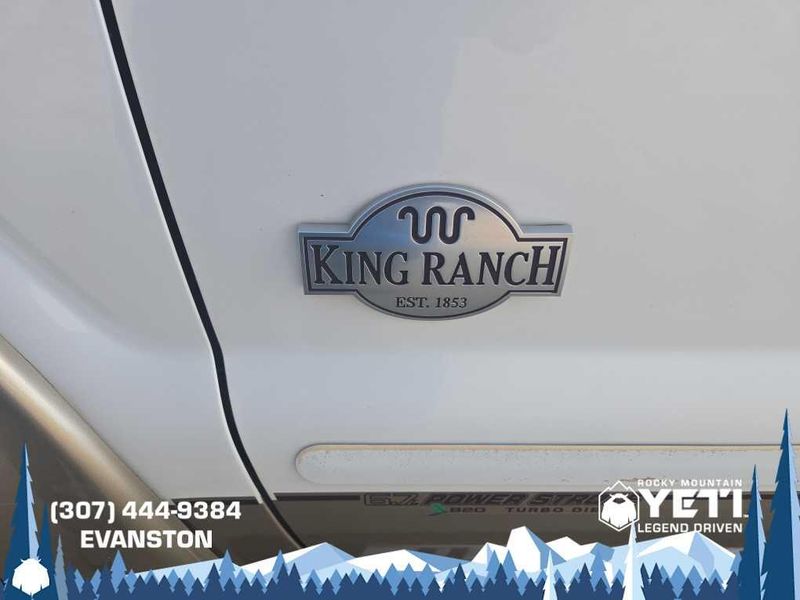 ENGINE: 6.7L 4 VALVE POWER STROKE DIESEL V8 (B20) engine exhaust braking integrated in tow haul mode, 26 Gallon Fuel Tank, GVWR: 11,300 lb Payload Package w/6.7L, 3.31 Axle Ratio, Dual 78-AH 750 CCA Batteries, POWER MOONROOF map lights and moonroof switches, KING RANCH W/CHROME PACKAGE unique King Ranch logo center ornament and painted hub covers, unique accent color box top/tailgate moldings, unique King Ranch fender badges, unique front and rear floor mats w/King Ranch logo, 2 chrome tow hooks and chrome pickup bed tie down hooks (not included when ordered w/(85S) ToughBed), King Ranch Chaparral Lthr-Wrapped Steering Wheel, audio controls, PowerScope Trailer-Tow Mirrors, power telescoping, power folding w/power heated glass, memory, heated convex spotter mirror and integrated clearance lights/turn signals, Body-Color Lower Bodyside Moldings, Accent Color Front Bumper, Memory Power Adjustable Pedals, Unique Chrome Mirror Caps, 6 Angular Chrome Step Bars, Wheels: 18 Chrome Clad Cast Aluminum, Accent Color Rear Bumper w/Step Pad, Chrome, ELECTRONIC LOCKING W/3.55 AXLE RATIO, TAILGATE STEP & HANDLE, HEATED REAR SEATS, TRANSMISSION: TORQSHIFT 6-SPD AUTO W/OD (6.7L) SelectShift, range select and tow haul feature.