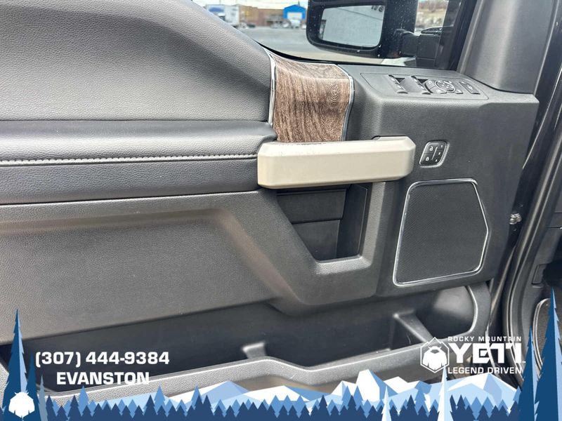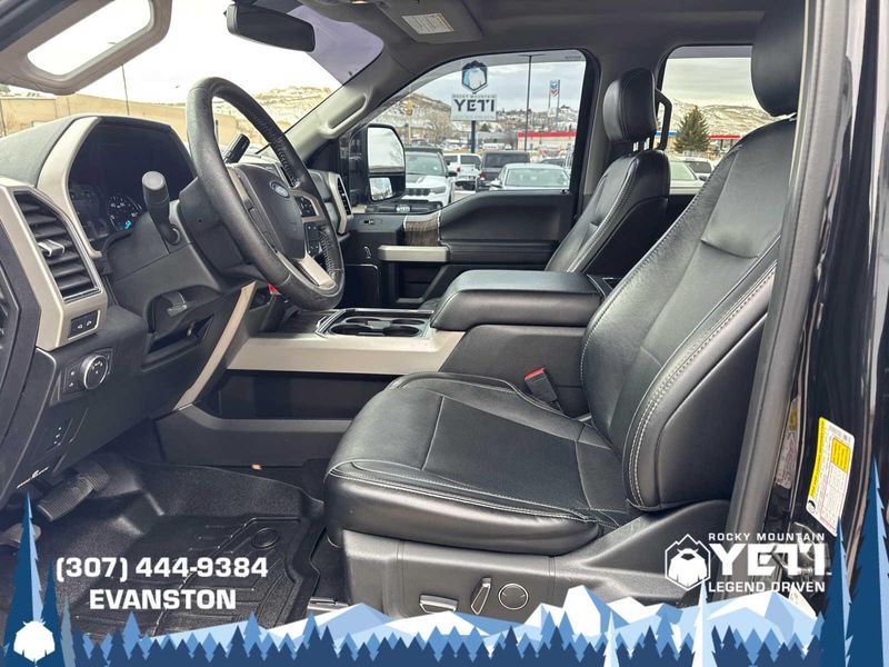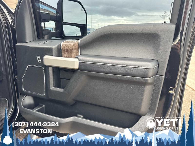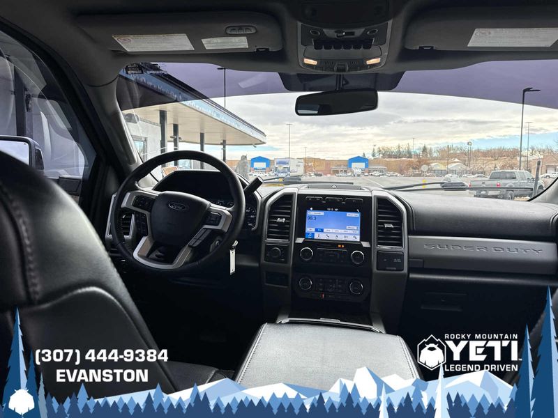 ENGINE: 6.7L 4V OHV POWER STROKE V8 TURBO DIESEL B20 manual push-button engine-exhaust braking and intelligent oil-life monitor, Dual Extra Heavy-Duty Alternators (Total 377-Amps), Extra Heavy-Duty 220 Amp Alternator, 3.31 Axle Ratio, 34 Gallon Fuel Tank, GVWR: 11,500 lb Payload Package, Dual 78-AH 750 CCA Batteries, LARIAT SPORT APPEARANCE PACKAGE ebony black fender vent surround, Black Out Surrounds Halogen Only Headlamps, Rear Wheel Well Liners (Pre-Installed), Ebony Black Painted Front Grille Bars, Ebony Black Painted Mirror Caps, Tires: LT275/65Rx20E OWL A/S (4), LT275/70Rx18E Automatic Transmission spare tire, Tough Bed Spray-In Bedliner, tailgate-guard, black box bed tie-down hooks and black bed attachment bolts, Wheels: 20 Ebony Black Painted Premium Aluminum, 6 Ebony Black Angular Running Boards, TWIN PANEL POWER MOONROOF map lights and moonroof switches, ULTIMATE TRAILER TOW CAMERA SYSTEM 360 degree camera system and trailer reverse guidance, Display appears in center-stack screen, NOTE: Does not include customer placed trailer camera, Rear CHMSL Camera, Display in center stack screen, LED Center High-Mounted Stop Lamp (CHMSL) w/cargo light and rear video camera, LARIAT VALUE PACKAGE Memory Power-Adjustable Pedals, Power Heated/Cooled Driver Seat w/Memory, Remote Start System, PowerScope Trailer Tow Mirrors w/Memory, EASY ENTRY/Exit Memory Drivers Seat Feature, LED Box Lighting, LED Center High-Mounted Stop Lamp (CHMSL), Power Heated/Cooled Passenger Seat, VOICE-ACTIVATED NAVIGATION HD and SiriusXM Traffic and Travel Link, NOTE: SiriusXM Traffic and Travel Link includes a, Services are not available in Alaska and Hawaii, BLIND SPOT INFORMATION SYSTEM (BLIS) cross-traffic alert and trailer tow (BLIS sensor in taillamp), ELECTRONIC-LOCKING W/3.55 AXLE RATIO, TAILGATE STEP & HANDLE, UNIVERSAL GARAGE DOOR OPENER (UGDO), TRANSMISSION: TORQSHIFT 6-SPEED AUTOMATIC (6R140), SelectShift.