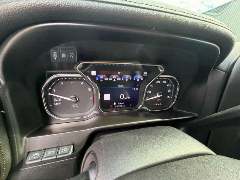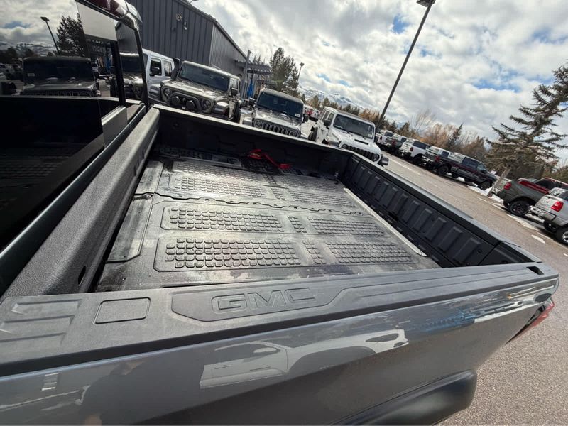 includes (L87) 6.2L EcoTec3 V8 engine, (PDM) Performance Upgrade Package, LPO, (R3O) LT275/65R18C MT blackwall Goodyear Wrangler DuraTrac tires and (RT5) 18 machined aluminum with Dark Grey accents, (420 hp [313 kW] @ 5600 rpm, 460 lb-ft of torque [624 Nm] @ 4100 rpm); featuring all-new Dynamic Fuel Management that enables the engine to operate in 17 different patterns between 2 and 8 cylinders, depending on demand, to optimize power delivery and efficiency, includes (UV2) HD Surround Vision, (DRZ) Rear Camera Mirror, full display and (UV6) Multi-color 15 Diagonal Head-Up Display Includes (UHS) 8 Digital Driver information Center and (S4X) dealer-installed Black mirror caps, LPO. includes (UG1) Universal Home Remote, (A48) rear sliding power window, (IOT) 8 diagonal Premium GMC Infotainment with navigation, (UQA) Bose Premium Audio System and (K4C) Wireless Charging, SUNROOF, POWER, includes (UD5) Front and Rear Park Assist, (UKC) Lane Change Alert with Side Blind Zone Alert and (UFG) Rear Cross Traffic Alert (Includes Perimeter Lighting. includes (UEU) Forward Collision Alert, (UHX) Lane Keep Assist/Lane Departure Warning, (UHY) Low Speed Forward Automatic Braking, (UKJ) Front Pedestrian Braking, (TQ5) IntelliBeam headlamps and (UE4) Following Distance Indicator Includes (HS1) Safety Alert Seat. Bluetooth streaming audio for music and most phones; featuring Android Auto and Apple CarPlay capability for compatible phones, advanced voice recognition, in-vehicle apps, personalized profiles for infotainment and vehicle settings. Includes greater memory, with overdrive and tow/haul mode. Includes Cruise Grade Braking and Powertrain Grade Braking.