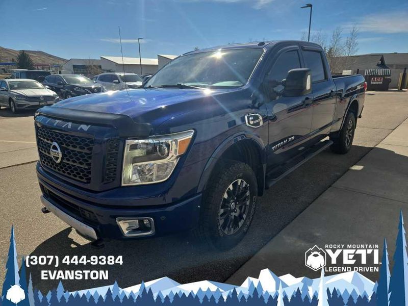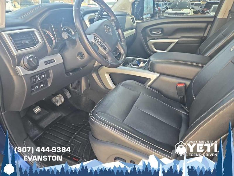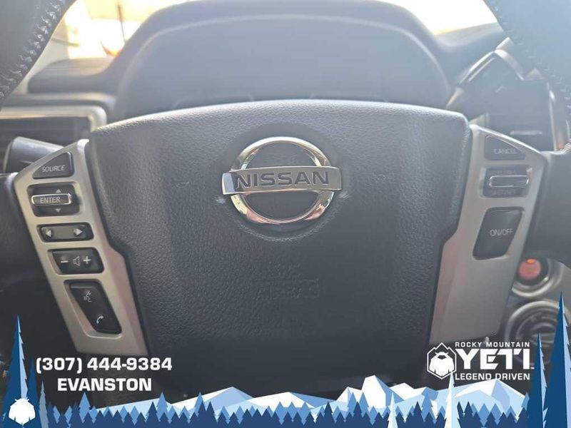 PRO-4X CONVENIENCE PACKAGE Heated Driver & Passenger Front Seats, Heated Rear Seats, 4-Way Power Assist Seat, Heated Power Tilt/Telescopic Steering Wheel, memory, Compass on Navi Display, Memory Driver Seat w/Auto Entry/Exit Feature, Auto Dimming Outside Mirrors, memory, Universal Garage Door Opener, Engine Remote Start Function, Included on key fob, Auto-Dimming Rearview Mirror, NissanConnect Services Powered by SiriusXM, automatic collision notification, emergency call and stolen vehicle locator, Remote services includes lock/unlock, engine start/stop, horn/lights, customizable alerts including boundary, curfew, speed, valet alerts and maintenance alerts, PREMIUM PACKAGE Intelligent Around View Monitor (I-AVM), moving object detection, Reverse Autotilt Outside Mirrors, TITAN Box, Ventilated Driver & Front Passenger Seats, PRO-4X UTILITY PACKAGE 110V Bed Outlet, Utilitrack System w/4 Tie-Down Cleats, Power Slide Rear Window w/Defogger, Tailgate Area Illumination, Front & Rear Parking Sensors, LED Under Rail Bed Lighting, Rear Utility Bed Step, Fender Premium Audio w/12 Speakers, amplifier, underseat subwoofer, center speaker and front/rear tweeters, Electronic Locking Tailgate, LED FOG LIGHTS W/BRIGHT CHROME BEZEL.
