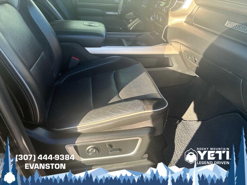 LARAMIE LEVEL 1 EQUIPMENT GROUP Remote Tailgate Release, Auto High Beam Headlamp Control, Blind Spot & Cross Path Detection, Rain Sensitive Windshield Wipers, ParkSense Front/Rear Park Assist w/Stop, Tailgate Ajar Warning Lamp, Foam Bottle Insert (Door Trim Panel), Single Disc Remote CD Player, Rear 60/40 Folding Split Recline Seat, DUAL-PANE PANORAMIC SUNROOF LED Dome/Reading Lamp, Dome Dual LED Reading Lamp, ENGINE: 5.7L V8 HEMI MDS VVT Active Noise Control System, Heavy Duty Engine Cooling, GVWR: 7,100 lbs, Dual Rear Exhaust w/Bright Tips, Hemi Badge, 220 Amp Alternator, WHEELS: 20 X 9 PREMIUM PAINT/POLISHED Tires: 275/55R20 OWL All Season, BLACK, LEATHER TRIMMED BUCKET SEATS Bucket Seats, Rear 60/40 Folding Split Recline Seat, Center Console Parts Module, Full Length Upgraded Floor Console, BED UTILITY GROUP Spray In Bedliner, 4 Adjustable Cargo Tie-Down Hooks, Pick-Up Box Lighting, RADIO: UCONNECT 4C NAV W/8.4 DISPLAY SiriusXM Traffic Plus, Disassociated Touchscreen Display, HD Radio, For Details, Visit DriveUconnect.com, 1-Yr SiriusXM Guardian Trial, GPS Navigation, SiriusXM Travel Link, No Satellite Coverage w/HI/AK/PR/VI/GU, WHEEL TO WHEEL SIDE STEPS, ANTI-SPIN DIFFERENTIAL REAR AXLE, TRAILER TOW GROUP Trailer Brake Control, Power Chrome Trailer Tow Mirrors, Trailer Tow Mirrors, TRANSMISSION: 8-SPEED AUTOMATIC (8HP75).