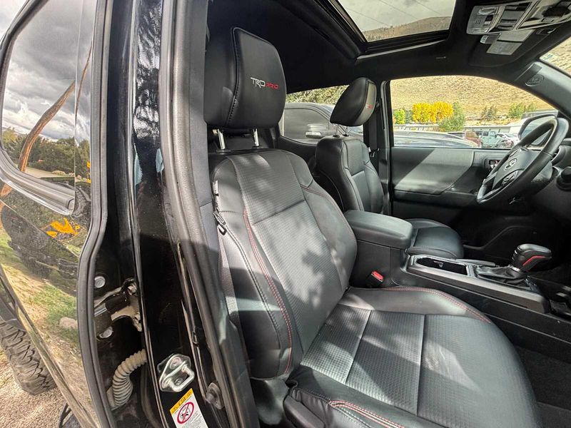 Midnight Black Metallic exterior and BLACK/BLACK interior. Heated Leather Seats, NAV, Sunroof, Tow Hitch, Alloy Wheels, 4x4, TRD PRO PACKAGE (TR).