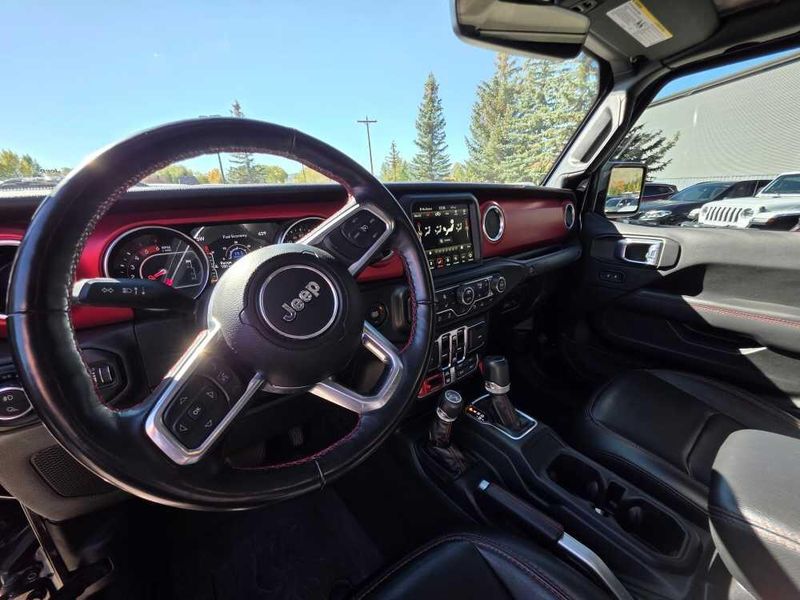 ENGINE: 3.0L V6 TURBO DIESEL W/ESS G3 ABS 4-Wheel HD Disc Brakes w/Front FNC, Auxiliary Battery, Selective Catalytic Reduction (Urea), Non-Lock Fuel Cap w/Discriminator, Gray EcoDiesel Badge, Supplemental Heater, 19 Gallon Fuel Tank, Stop-Start Dual Battery System, GVWR: 6,450 lbs, 3.73 Rear Axle Ratio, BODY COLOR 3-PIECE HARD TOP Freedom Panel Storage Bag, Rear Window Defroster, Rear Sliding Window, No Soft Top, TRANSMISSION: 8-SPEED AUTOMATIC (8HP75) Tip Start, Transmission Skid Plate, Selec-Speed Control, 8.4 RADIO & PREMIUM AUDIO GROUP SiriusXM Traffic Plus, Alpine Premium Audio System, HD Radio, Radio: Uconnect 4C Nav w/8.4 Display, Rear View Auto Dim Mirror, For Details, Visit DriveUconnect.com, 1-Year SiriusXM Guardian Trial, GPS Navigation, SiriusXM Travel Link, Emergency/Assistance Call, 8.4 Touchscreen Display, BLACK, LEATHER TRIMMED BUCKET SEATS Full Length Floor Console Premium Armrest, Leather Wrapped Park Brake Handle, Leather Wrapped Shift Knob, Premium Door Trim Panel, Rear Armrest w/Cupholder Seat, LED LIGHTING GROUP Daytime Running Lamps LED Accents, LED Park Turn Lamps, Front LED Fog Lamps, LED Premium Reflector Headlamps, LED Taillamps, COLD WEATHER GROUP Heated Steering Wheel, Heated Front Seats, SAFETY GROUP ParkSense Rear Park Assist System, Blind Spot & Cross Path Detection, REMOTE PROXIMITY KEYLESS ENTRY, TRAILER TOW PACKAGE Trailer Hitch Zoom, Class IV Hitch Receiver, Heavy Duty Engine Cooling, 240 Amp Alternator, REMOTE START SYSTEM.