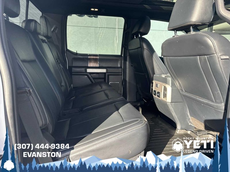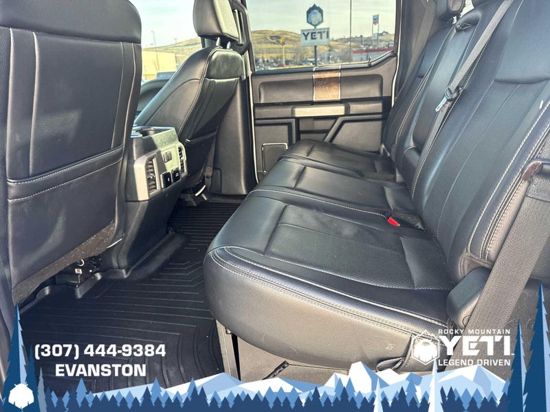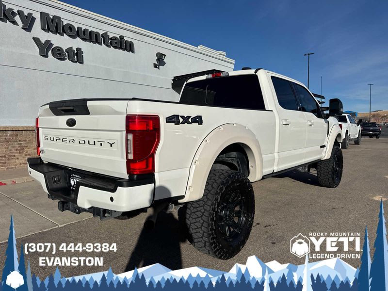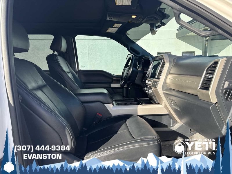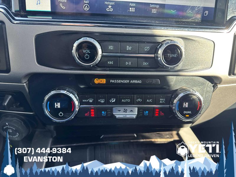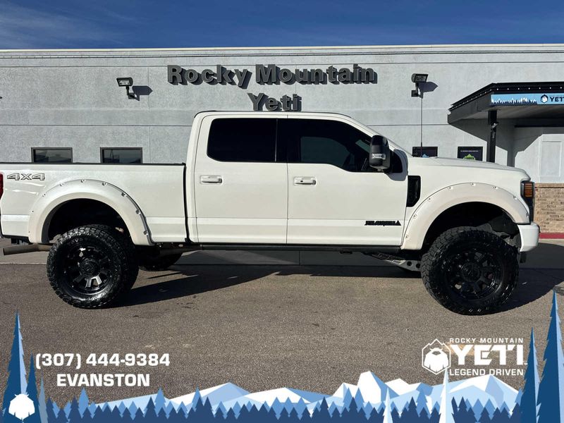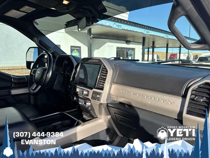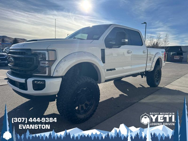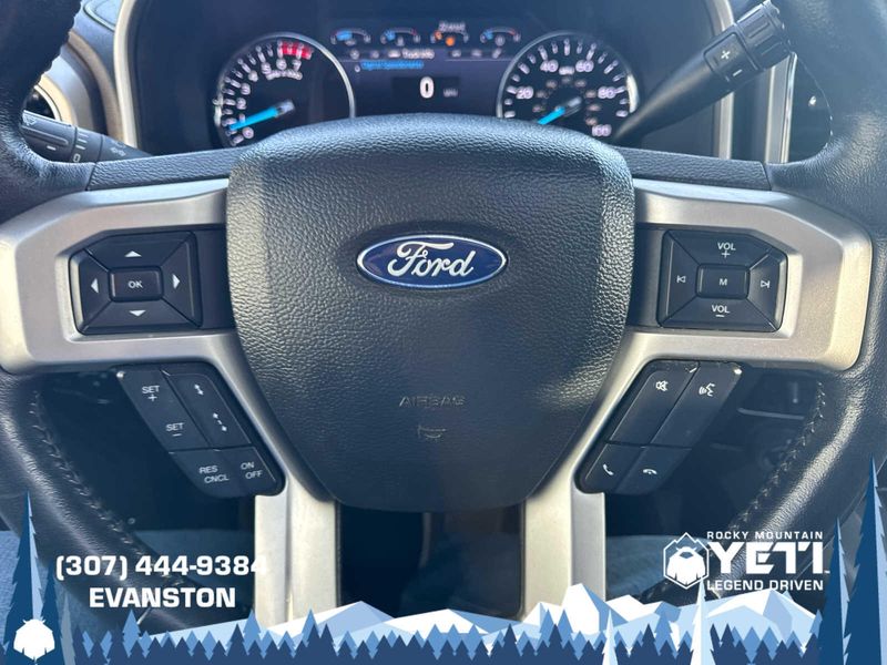 BLACK APPEARANCE PACKAGE front and rear black Ford oval logos and ebony black fender vent surround, Black Out Surrounds LED Only Headlamps, Rear Wheel Well Liners (Pre-Installed), Ebony Black Painted Front Grille Bars, Ebony Black Painted Mirror Caps, Tough Bed Spray-In Bedliner, tailgate-guard, black box bed tie-down hooks and black bed attachment bolts, Body-Color Front & Rear Bumpers, Wheels: 20 High-Gloss Black Premium Painted Alum, Tires: LT275/65Rx20E OWL Automatic Transmission (4), Spare may not be the same as road tire, 6 Ebony Black Angular Running Boards, LARIAT ULTIMATE PACKAGE Power Heated/Ventilated Driver Seat w/Memory, PowerScope Trailer Tow Mirrors w/Memory, EASY ENTRY/Exit Memory Drivers Seat Feature, Tailgate Step & Handle, LED Box Lighting, LED Center High-Mounted Stop Lamp (CHMSL), Intelligent Access w/Push-Button Start, Power Heated/Ventilated Passenger Seat, Memory Power-Adjustable Pedals, Remote Start System, Ambient Lighting - Fixed Color, Power Telescoping/Tilt Steering Wheel/Column, memory and audio controls, Remote Tailgate Release, ENGINE: 7.3L 2V DEVCT NA PFI V8 GAS Heavy-Duty Alternator (240 Amp), 3.55 Axle Ratio, PRO TRAILER BACKUP ASSIST Ultimate Trailer Tow Camera System, rear view camera, 360 degree camera system, rear CHMSL camera, trailer reverse guidance and LED center high-mounted stop lamp, Lane Departure Warning, TWIN PANEL POWER MOONROOF map lights and moonroof switches, ADAPTIVE CRUISE CONTROL & COLLISION WARNING brake support, ELECTRONIC-LOCKING W/3.55 AXLE RATIO, TRANSMISSION: TORQSHIFT 10-SPEED AUTOMATIC SelectShift and selectable drive modes: normal, tow/haul, eco, deep sand/snow and slippery.