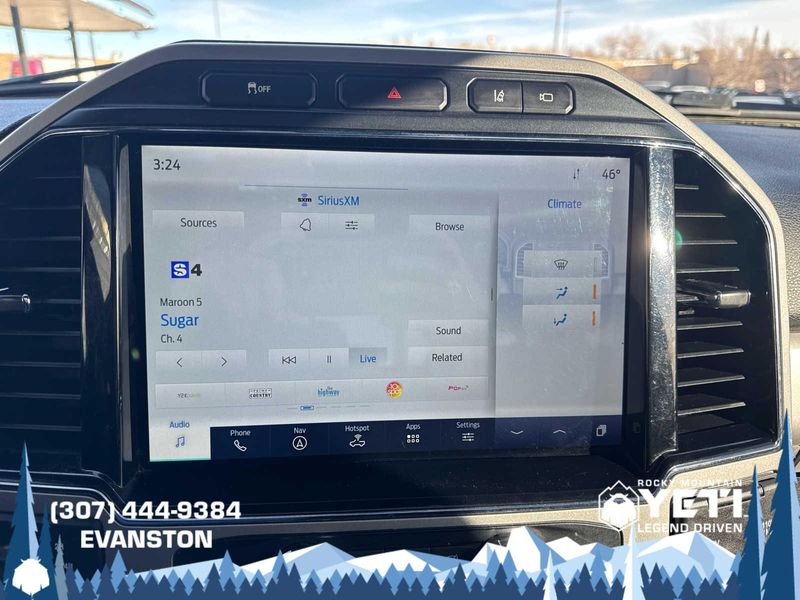 Leather Seats, Navigation, 4x4, Premium Sound System, Satellite Radio Ford LARIAT with Star White Metallic Tri-Coat exterior and Black interior features a 8 Cylinder Engine with 430 HP at 5500 RPM*.