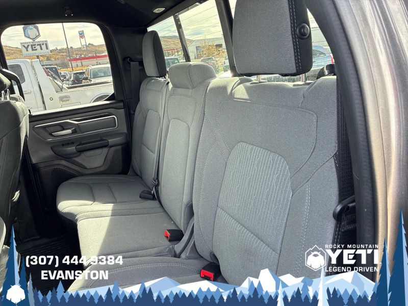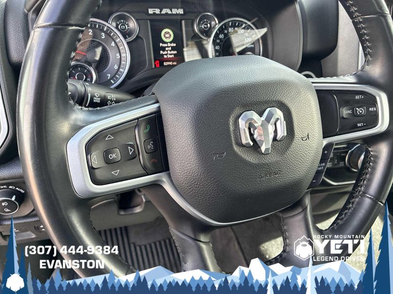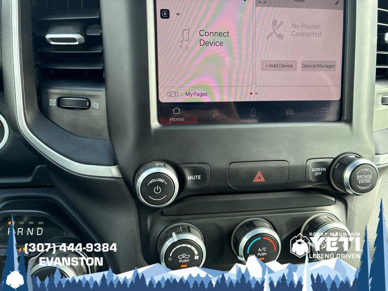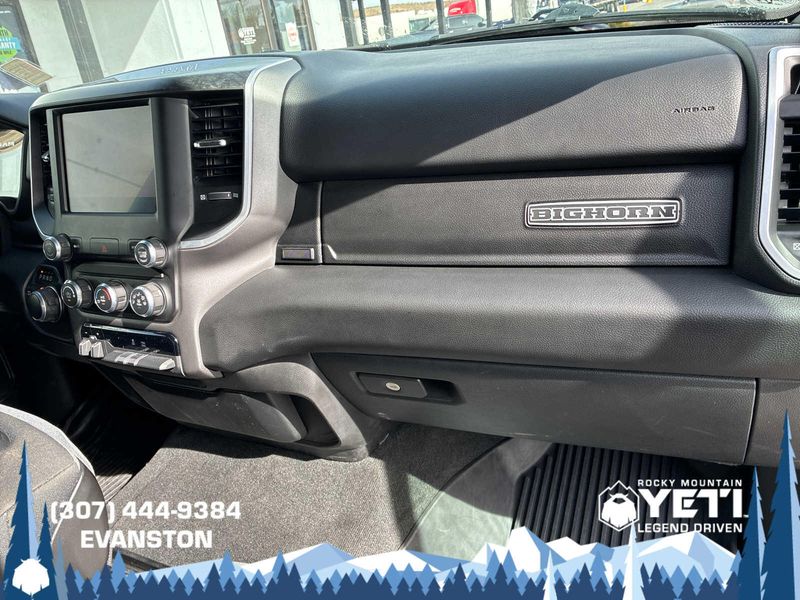ENGINE: 5.7L V8 HEMI MDS VVT Active Noise Control System, Heavy Duty Engine Cooling, Passive Tuned Mass Damper, GVWR: 7,100 lbs, Dual Rear Exhaust w/Bright Tips, HEMI Badge, 26 Gallon Fuel Tank, BIG HORN LEVEL 1 EQUIPMENT GROUP Google Android Auto, SiriusXM Radio Service, Bluetooth Handsfree Phone & Audio, USB Host Flip, Rear Window Defroster, Integrated Center Stack Radio, Rear View Auto Dim Mirror, For Details, Visit DriveUconnect.com, Power Adjustable Pedals, For More Info, Call 800-643-2112, Rear Power Sliding Window, Rear Dome w/On/Off Switch Lamp, Connectivity - US/Canada, Glove Box Lamp, 4G LTE Wi-Fi Hot Spot, Exterior Mirrors w/Heating Element, Power 8-Way Driver Seat, Auto Dim Exterior Driver Mirror, Radio: Uconnect 5 W w/8.4 Display, 8.4 Touchscreen Display, Class IV Receiver Hitch, Black Premium Power Mirrors, Apple CarPlay, Big Horn IP Badge, SiriusXM Satellite Radio, Exterior Mirrors w/Supplemental Signals, Exterior Mirrors Courtesy Lamps, Universal Garage Door, REMOTE START SYSTEM, TRANSMISSION: 8-SPEED AUTOMATIC (8HP75).