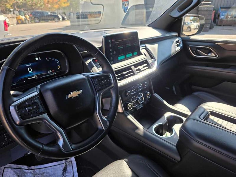 LUXURY PACKAGE includes (WPD) Driver Alert Package content, (UV2) HD Surround Vision, (UKK) Rear Pedestrian Alert, (A45) memory settings, (DXR) outside heated power-adjustable, power-folding, body-color mirrors with driver-side auto-dimming and integrated turn signal indicators, (N38) power tilt and telescopic steering column, (KI3) heated steering wheel, (KA6) second row outboard heated seats, (ATT) second row power 60/40 split-folding bench seats and (AS8) third row power 60/40 split-folding bench seats, AUDIO SYSTEM, CHEVROLET INFOTAINMENT 3 PREMIUM SYSTEM WITH GOOGLE BUILT-IN 10.2 diagonal HD color touchscreen, includes multi-touch display, AM/FM stereo, Bluetooth streaming audio for music and most phones; featuring wireless Android Auto and Apple CarPlay capability for compatible phones, advanced voice recognition, in-vehicle apps, personalized profiles for infotainment and vehicle settings.) (STD), STEERING WHEEL, HEATED, ENGINE, 5.3L ECOTEC3 V8 with Dynamic Fuel Management, Direct Injection and Variable Valve Timing, includes aluminum block construction (355 hp [265 kW] @ 5600 rpm, 383 lb-ft of torque [518 Nm] @ 4100 rpm) (STD), TRANSMISSION, 10-SPEED AUTOMATIC electronically controlled with overdrive, includes Traction Select System including tow/haul (Standard with (L84) 5.3L EcoTec3 V8 engine only.) (STD), DRIVER ALERT PACKAGE includes (UKC) Lane Change Alert with Side Blind Zone Alert and (UFG) Rear Cross Traffic Alert.