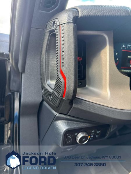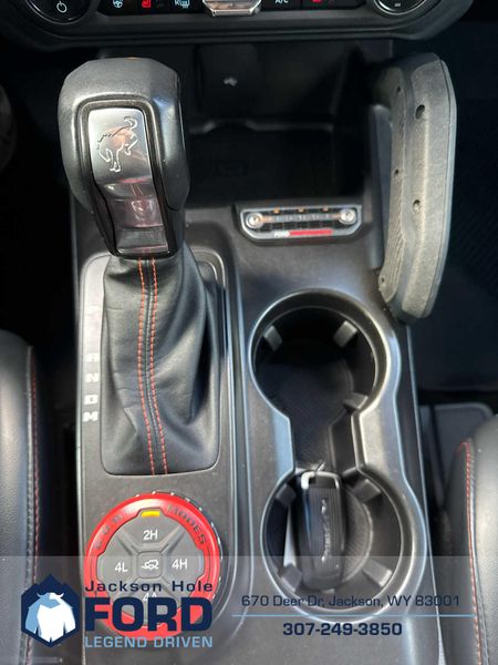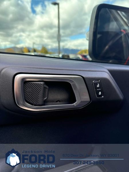 Lux Package, 2 Smart Charging USB Ports In Dashboard, 1 A and 1 C, Evasive Steering Assist, Heated Steering Wheel, Adaptive Cruise Control, Universal Garage Door Opener, Wireless Charging Pad, Radio: B&O Sound System by Bang & Olufsen, 10 Speakers w/Subwoofer, Connected Built-In Navigation, 3 years of service, pinch-to-zoom capability, live traffic, predictive destinations and route guidance, Navigation services require SYNC4 and FordPass Connect (optional on select vehicles), complimentary connect service and the FordPass app (see FordPass terms for details), Customer receives a complimentary 3-year trial of navigation services when an eligible vehicle is added to a members FordPass account, Trial period begins w/new vehicle warranty start date, At the end of the complimentary period, 10-way power driver seat, 8-way front passenger seat, second row armrest w/2 beverage holders and front driver/passenger seat back MOLLE strap system, Carpet flooring replaces the standard rubberized flooring, trail control, trail turn assist and trail one-pedal driving (STD), electric brake boost (STD).