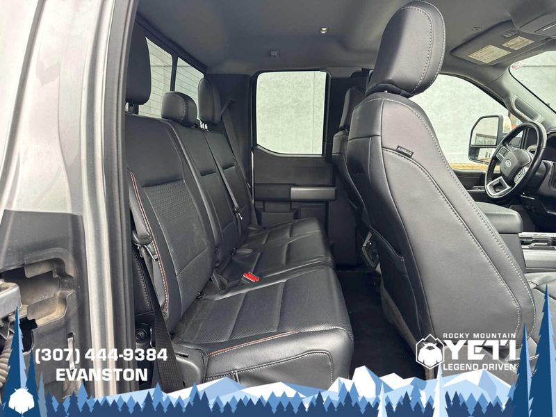 ENGINE: 6.7L 4V OHV POWER STROKE V8 TURBO DIESEL B20 manual push-button engine-exhaust braking, Operator Commanded Regeneration (OCR) and intelligent oil-life monitor, 34 Gallon Fuel Tank, GVWR: 12,300 lb Payload Package, 3.31 Axle Ratio, Dual 68 AH/65 AGM Batteries, CHROME PACKAGE 2 front chrome tow hooks, Unique Chrome Mirror Caps, Tires: LT275/65Rx20E BSW Automatic Transmission (4), Spare may not be the same as road tire, Wheels: 20 Chrome PVD Aluminum, Chrome Door Handles, 6 Angular Bright Anodized Step Bars, Chrome Exhaust Tip, ELECTRONIC-LOCKING W/3.55 AXLE RATIO, TRANSMISSION: TORQSHIFT 10-SPEED AUTOMATIC SelectShift and selectable drive modes: normal, eco, slippery roads, tow/haul and off-road (STD).