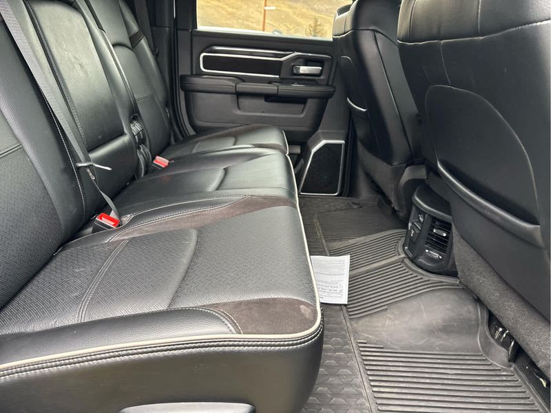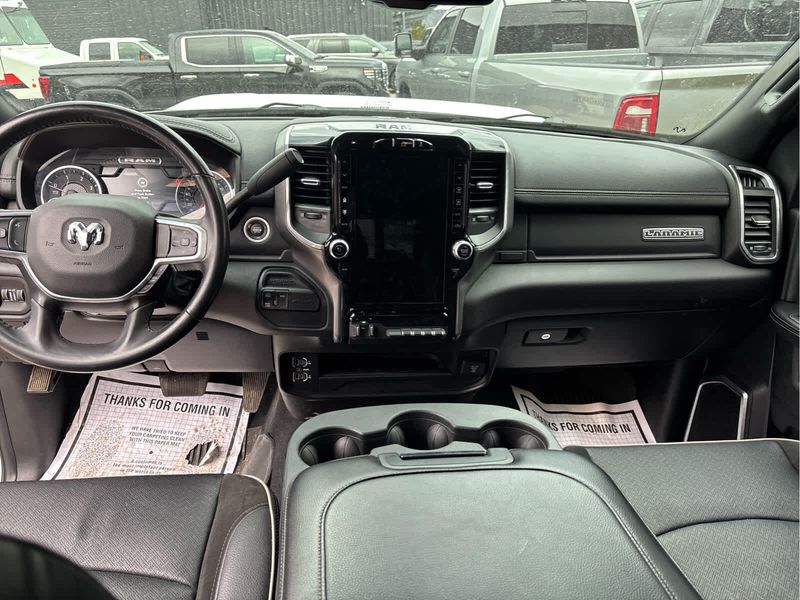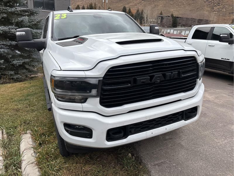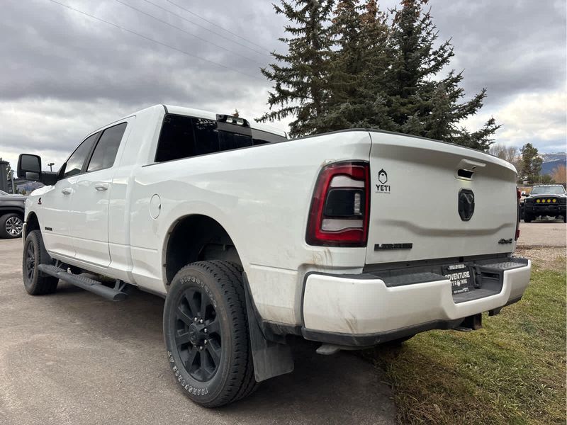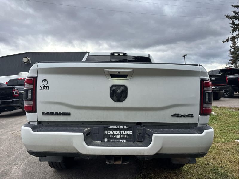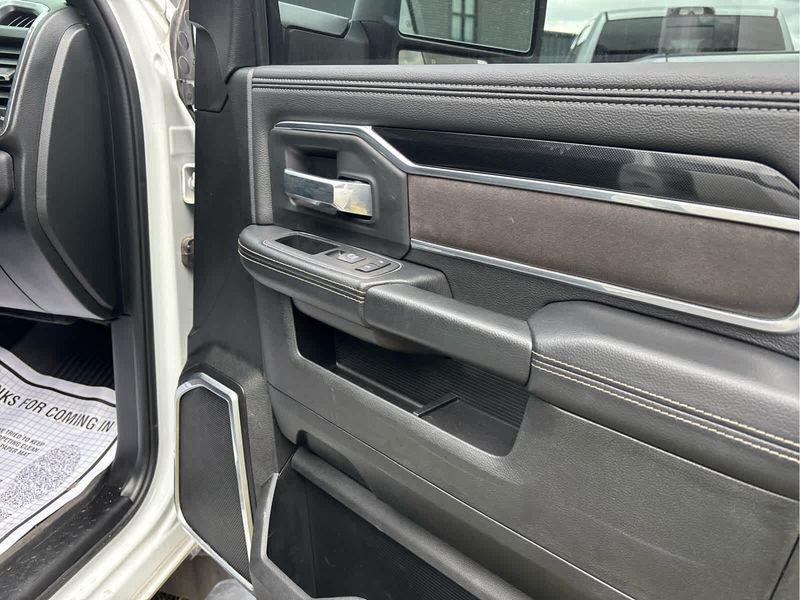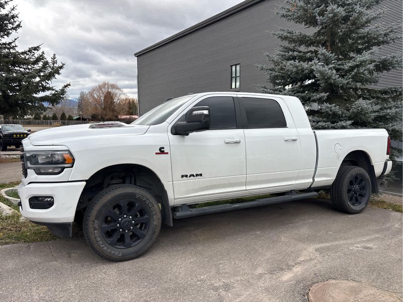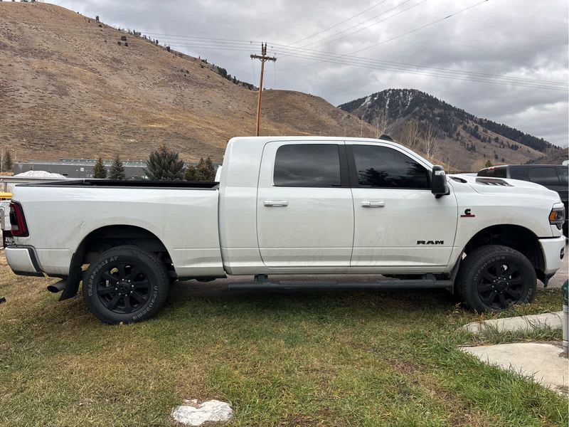 ENGINE: 6.7L I6 CUMMINS TURBO DIESEL Selective Catalytic Reduction (Urea), Dual 730 Amp Maintenance Free Batteries, Cummins Turbo Diesel Badge, Heavy Duty Engine Cooling, Supplemental Heater, Tow Hooks, Diesel Exhaust Brake, Front Bumper Sight Shields, Capless Fuel Fill w/o Discriminator, NIGHT EDITION Black RAM Head Tailgate Badge, Wheels: 20 x 8.0 Black Painted Aluminum, Black Headlamp Bezels, Sport Performance Hood, Black Wheel Center Hub, Tires: LT285/60R20E OWL On/Off Road, Black Exterior Truck Badging, Gloss Black Grille Billets/Accents, Body Color Grille Surround, Black Interior Accents, Black Tail Lamp Bezels, ParkSense Front/Rear Park Assist System, LARAMIE LEVEL 1 EQUIPMENT GROUP Rear Window Defroster, Blind Spot & Cross Path Detection, Rain Sensitive Windshield Wipers, Power Adjustable Pedals w/Memory, Rear Power Sliding Window, 12 Touchscreen Display, Auto Dim Exterior Mirror, Front LED Fog Lamps, LED Reflector Headlamps, Foam Bottle Insert (Door Trim Panel), Radio: Uconnect 5 Nav w/12.0 Display, Mirror Power Heat Fold Memory Tele, Remote Tailgate Release, Auto High Beam Headlamp Control, Exterior Mirrors w/Memory, Radio/Driver Seat/Mirrors/Pedals Memory, Auto Dim Exterior Passenger Mirror, Auto Adjust In Reverse Exterior Mirrors, ParkSense Front/Rear Park Assist System, TOWING TECHNOLOGY GROUP Center Stop Lamp w/Cargo View Camera, Surround View Camera System, Trailer Reverse Guidance, TRANSMISSION: 6-SPEED AUTOMATIC (68RFE) Urethane Shift Control.