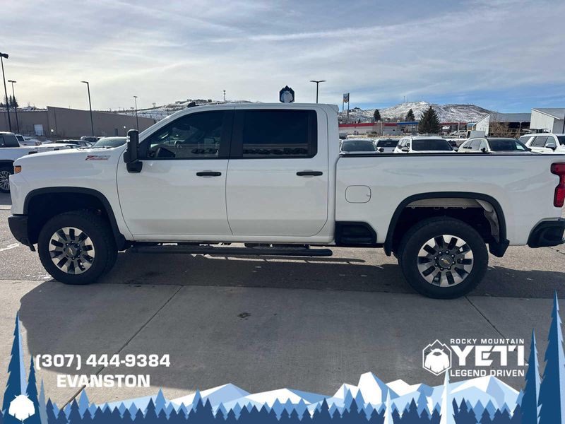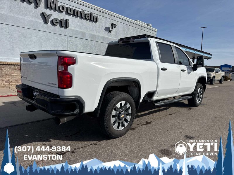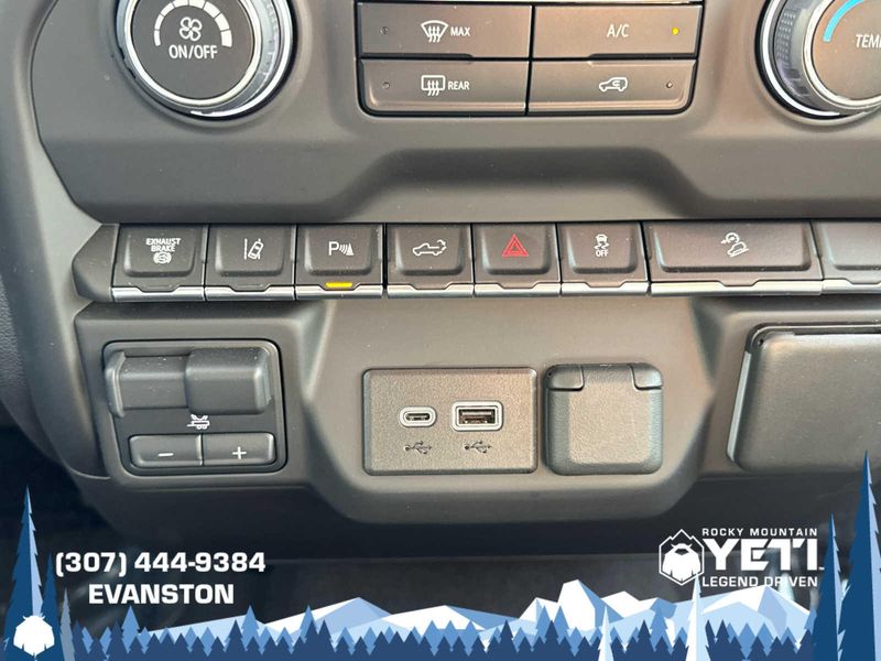 ENGINE, DURAMAX 6.6L TURBO-DIESEL V8 B20-Diesel compatible, (470 hp [350.5 kW] @ 2800 rpm, 975 lb-ft of torque [1322 Nm] @ 1600 rpm), CUSTOM CONVENIENCE PACKAGE includes (BTV) Remote Start with (UTJ) content theft alarm, (KI4) 120-volt power outlet, (KC9) 120-volt bed-mounted power outlet, (UBI) 2 charge-only USB ports for second row, (C49) rear-window defogger, (A2X) 10-way power driver seat including power lumbar, (UF2) bed LED cargo area lighting, (QT5) EZ Lift power lock and release tailgate and (JL1) Trailer brake controller. (Included with (PDX) Custom Value Package. Beginning with the start of production certain vehicles will be forced to include (RFO) Not Equipped with USB ports rear.), WT/CX SAFETY PACKAGE includes (UD7) Rear Park Assist, (UKC) Lane Change Alert with Side Blind Zone Alert and (UFG) Rear Cross Traffic Alert, CHEVYTEC SPRAY-ON BEDLINER Black (does not include spray-on liner on tailgate due to Black composite inner panel), MIRRORS, OUTSIDE POWER-ADJUSTABLE VERTICAL TRAILERING WITH HEATED AND AUTO-DIMMING UPPER GLASS lower convex mirrors, turn signal indicators, puddle lamps, perimeter lighting, auxiliary lighting, power folding/manual extending (extends 3.31 [84.25mm]) Includes (DD8) auto-dimming rearview mirror. AUDIO SYSTEM, CHEVROLET INFOTAINMENT 3 SYSTEM 7 diagonal HD color touchscreen, AM/FM stereo, Bluetooth audio streaming for 2 active devices, voice command pass-through to phone, Wireless Apple CarPlay and Wireless Android Auto compatibility (STD), TRANSMISSION, ALLISON 10-SPEED AUTOMATIC.