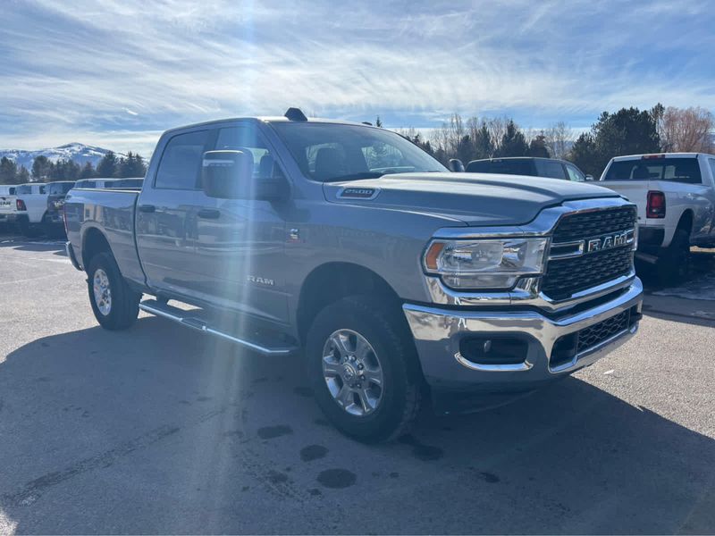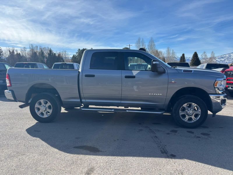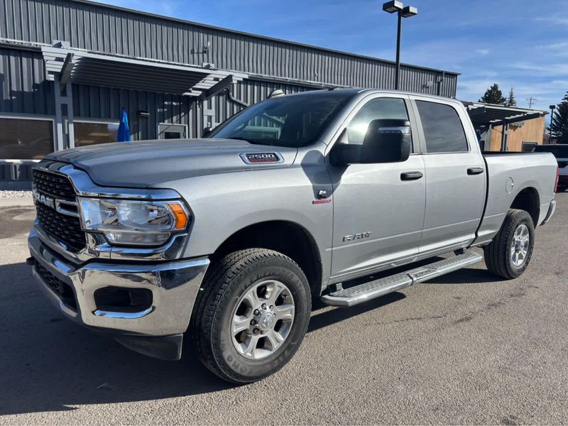 DIESEL GRAY/BLACK, PREMIUM CLOTH 40/20/40 BENCH SEAT Storage Tray, Rear 60/40 Folding Seat, Front Armrest w/Cupholders, Remote USB Port - Charge Only, Front Center Seat Cushion Storage, Manual Adjust 4-Way Front Passenger Seat, Power Adjust 8-Way Driver Seat, Front Seat Back Map Pockets, Power 2-Way Driver Lumbar Adjust, CHROME FLAT CAB-LENGTH SIDE STEPS, LEVEL 1 EQUIPMENT GROUP Google Android Auto, For Details, Visit DriveUconnect.com, For More Info, Call 800-643-2112, Leather Wrapped Steering Wheel, Rear Dome w/On/Off Switch Lamp, Front Fog Lamps, Glove Box Lamp, Auto Power-Folding Mirrors, Footwell Courtesy Lamp, 4G LTE Wi-Fi Hot Spot, Mirror Running Lights, Radio: Uconnect 5 W w/8.4 Display, 8.4 Touchscreen Display, Foam Bottle Insert (Door Trim Panel), Wheels: 18 x 8.0 Polished Aluminum, Apple CarPlay, Big Horn IP Badge, Power Adjustable Convex Aux Mirrors, Forward & Reverse Utility Lights, Locking Lower Glove Box, Selectable Tire Fill Alert, SiriusXM Satellite Radio, Power Heated Fold Telescope Mirrors, Exterior Mirrors w/Supplemental Signals, Steering Wheel Mounted Audio Controls, Exterior Mirrors Courtesy Lamps, Dual Glove, TRANSMISSION: 6-SPEED AUTOMATIC (68RFE).