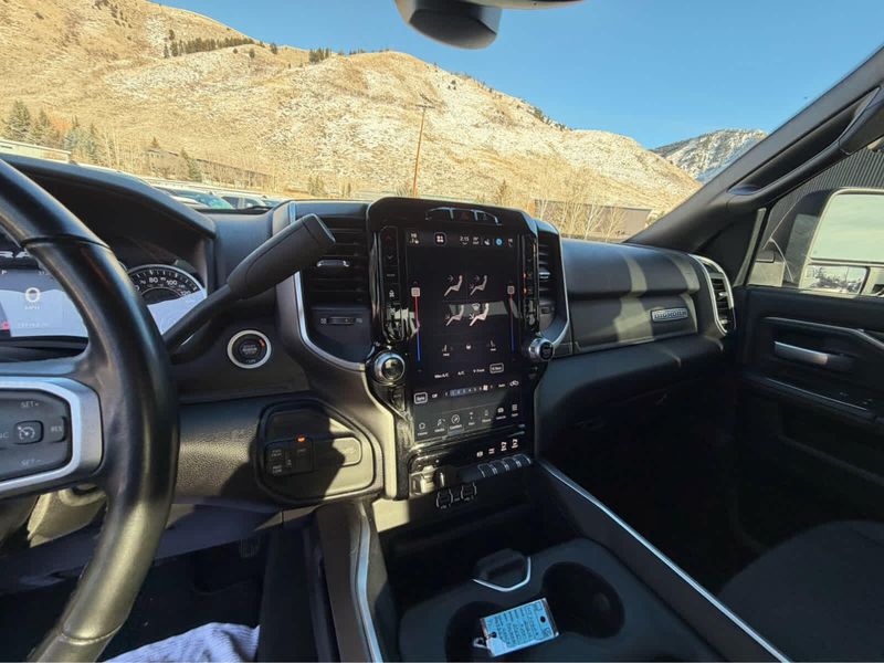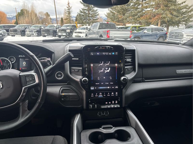RADIO: UCONNECT 5 NAV W/12.0 DISPLAY Google Android Auto, Off-Road Information Pages, Selectable Tire Fill Alert, Trailer Tow Pages, Disassociated Touchscreen Display, HD Radio, For Details, Visit DriveUconnect.com, For More Info, Call 800-643-2112, 12 Touchscreen Display, Air Conditioning ATC w/Dual Zone Control, GPS Navigation, 4G LTE Wi-Fi Hot Spot, SiriusXM w/360L, All Radio Equipped Vehicles, Connected Travel & Traffic Services, All R1 High Radios, Alexa Built-In, Apple CarPlay, 9 ALPINE SPEAKERS W/SUBWOOFER, ANTI-SPIN DIFFERENTIAL REAR AXLE, HEATED SEATS & WHEEL GROUP Heated Steering Wheel, Steering Wheel Mounted Audio Controls, Heated Front Seats, Leather Wrapped Steering Wheel, BLACK, PREMIUM CLOTH BUCKET SEATS Bucket Seats, Manual Adjust 4-Way Front Passenger Seat, Power Adjust 8-Way Driver Seat, Rear 60/40 Folding Seat, Front Seat Back Map Pockets, Power 2-Way Driver Lumbar Adjust, Full Length Upgraded Floor Console, REMOTE START SYSTEM, LEVEL 1 EQUIPMENT GROUP Google Android Auto, For Details, Visit DriveUconnect.com, For More Info, Call 800-643-2112, Leather Wrapped Steering Wheel, Rear Dome w/On/Off Switch Lamp, Front Fog Lamps, Glove Box Lamp, Auto Power-Folding Mirrors, Footwell Courtesy Lamp, 4G LTE Wi-Fi Hot Spot, Radio: Uconnect 5 W w/8.4 Display, 8.4 Touchscreen Display, Foam Bottle Insert (Door Trim Panel), Wheels: 18 x 8.0 Polished Aluminum, Apple CarPlay, Big Horn IP Badge, Power Adjustable Convex Aux Mirrors, Forward & Reverse Utility Lights, Locking Lower Glove Box, Selectable Tire Fill Alert, SiriusXM Satellite Radio, Power Heated Fold Telescope Mirrors, Exterior Mirrors w/Supplemental Signals, Steering Wheel Mounted Audio Controls, Exterior Mirrors Courtesy Lamps, Dual Glove Boxes, 2nd Row In Floor, TRANSMISSION: 6-SPEED AUTOMATIC (68RFE).