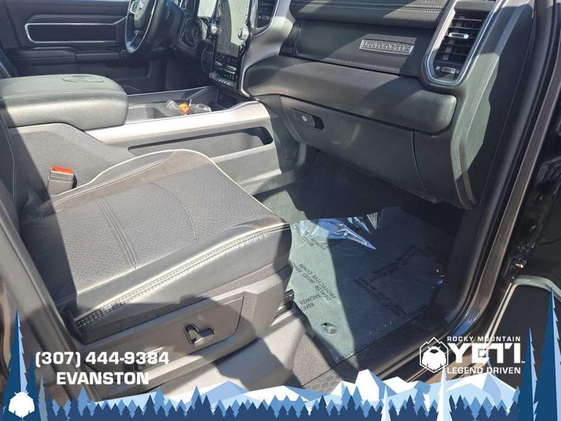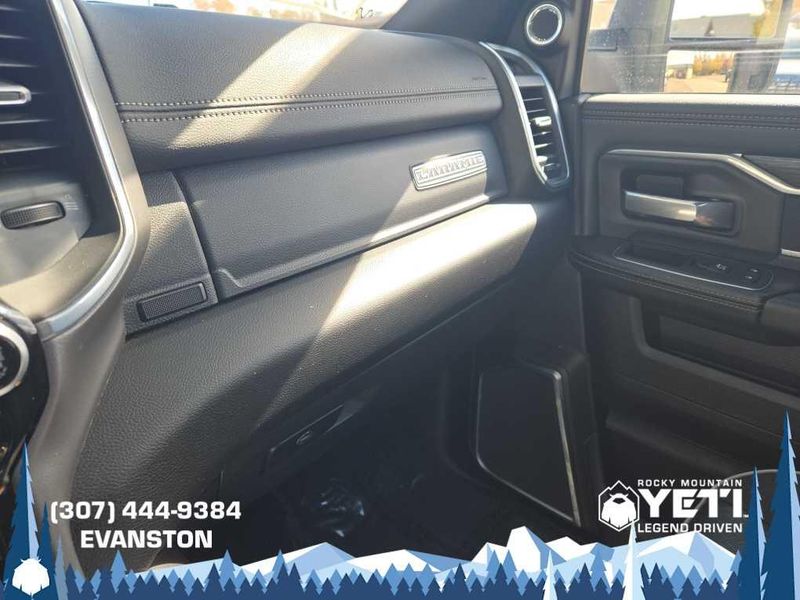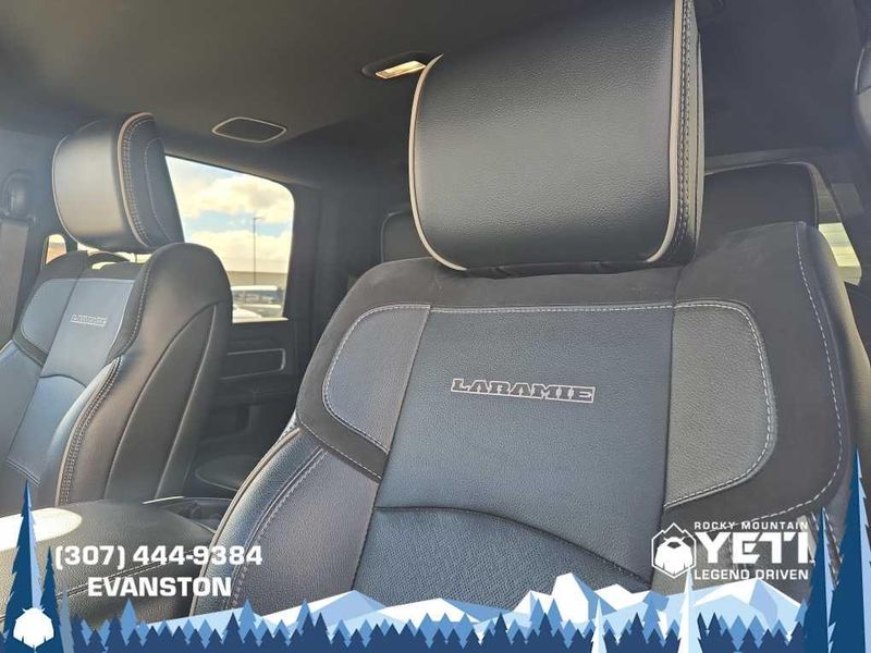 ENGINE: 6.7L I6 CUMMINS HO TURBO DIESEL Selective Catalytic Reduction (Urea), Dual 730 Amp Maintenance Free Batteries, Cummins Turbo Diesel Badge, Heavy Duty Engine Cooling, Supplemental Heater, 220 Amp Alternator, GVWR: 11,800 lbs, Current Generation Engine Controller, Diesel Exhaust Brake, Capless Fuel Fill w/o Discriminator, NIGHT EDITION Black RAM Head Tailgate Badge, Wheels: 20 x 8.0 Black Painted Aluminum, Black Headlamp Bezels, Sport Performance Hood, Black Wheel Center Hub, Tires: LT285/60R20E OWL On/Off Road, Black Exterior Truck Badging, Gloss Black Grille Billets/Accents, Body Color Grille Surround, Black Interior Accents, Black Tail Lamp Bezels, ParkSense Front/Rear Park Assist System, LARAMIE LEVEL B EQUIPMENT GROUP Blind Spot & Cross Path Detection, LED Tail Lamps, Power Adjustable Pedals w/Memory, 12 Touchscreen Display, Auto Power-Folding Mirrors, Front LED Fog Lamps, Mirror Running Lights, Forward & Reverse Utility Lights, Remote Tailgate Release, 17 Speaker harman/kardon Premium Sound, 2nd Row In Floor Storage Bins, Rear Window Defroster, Rain Sensitive Windshield Wipers, Rear Power Sliding Window, Auto Dimming Exterior Mirrors, Heated Second Row Seats, LED Reflector Headlamps, Foam Bottle Insert (Door Trim Panel), Wheels: 18 x 8 Polished Aluminum, Radio: Uconnect 5 Nav w/12.0 Display, Power Heat Fold Memory Telescopic Mirrors, Auto High Beam Headlamp Control, Chrome Exterior Mirrors, Exterior Mirrors w/Memory, Power Telescoping Mirrors, Auto Dimming Exterior, TOWING TECHNOLOGY GROUP CTR Stop Lamp w/Cargo View Camera, Surround View Camera System, Trailer Reverse Guidance, SAFETY GROUP Adaptive Cruise Control w/Stop, Adaptive Steering System, Full Speed Forward Collision Warning Plus, Lane Keep Assist, BLACK, LEATHER TRIMMED BUCKET SEATS Bucket Seats, Power 2-Way Passenger Lumbar Adjust, Power 2-Way Driver Lumbar Adjust, Full Length Upgraded Floor Console, TRANSMISSION: 6-SPEED AUTOMATIC AISIN AS69RC HD 12.0 Single Rear Wheel Axle, Urethane Shift Control, Transmission Oil Cooler.