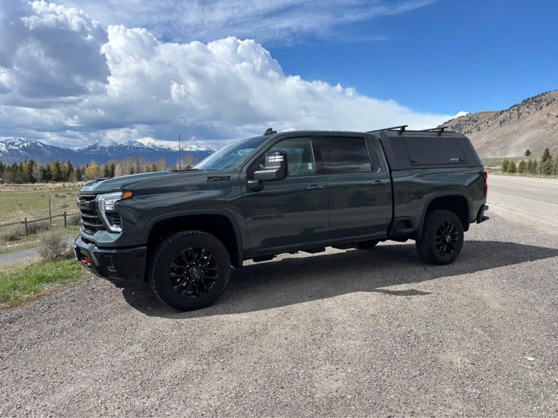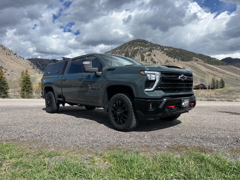 ENGINE, DURAMAX 6.6L TURBO-DIESEL V8, B20-DIESEL COMPATIBLE (470 hp [350.5 kW] @ 2800 rpm, 975 lb-ft of torque [1322 Nm] @ 1600 rpm), TRAIL BOSS PACKAGE includes black grille bar with Chevy Black Bow Tie, Black grille inserts, (SRI) 20 High gloss Black painted wheels, (VB5) High Gloss Black painted front bumper, (VT5) High Gloss Black painted rear bumper, (UGA) Red Tow Hooks, (QFG) LT275/65R20 BF Goodrich off-road tires, Black skid plate, Black badging, Black bowtie on horn pad, (DP6) High Gloss Black mirror caps, Black hood vent surround, and (CGN) Chevytec spray-on bedliner Includes Black beltline moldings, (D75) Body-colored painted door handles. When ordered with (QK2) Multi-Flex tailgate, will include Black tailgate bowtie. LTZ CONVENIENCE PACKAGE includes (A50) bucket seats with (D07) center console, (KQV) heated and ventilated front seats, (QT6) power up/down tailgate, (UF2) bed LED cargo area lighting, (UBC) USB Ports, (UQA) Bose Premium Audio System and (K4C) Wireless Charging, SAFETY PACKAGE includes (UD5) Front and Rear Park Assist, (UKV) Trailer Side Blind Zone Alert, (UFG) Rear Cross Traffic Alert, (UV2) HD Surround Vision, (UVN) Bed View Camera and (TRG) Trailer Camera Provisions Includes (HS1) Safety Alert Seat.), GOOSENECK / 5TH WHEEL PREP PACKAGE -- Hitch platform to accept Gooseneck or 5th Wheel hitch. Includes hitch platform with tray to accept ball, stamped bed holes with removable caps installed and bed mounted 7-pin trailer harness (similar to UY2 harness). (Includes (CGN) Chevytec spray-on bedliner.), LTZ CONVENIENCE PACKAGE II includes (A48) Rear sliding power window, (UG1) Universal Home Remote, (KA6) Rear heated seats and (KSG) Adaptive Cruise Control, AUDIO SYSTEM, CHEVROLET INFOTAINMENT 3 PREMIUM SYSTEM with Google built-in compatibility (select service plan required, terms and limitations apply) including navigation capability, 13.4 diagonal HD color touchscreen, includes multi-touch display, AM/FM stereo, Bluetooth streaming audio for music and most phones; featuring Wireless Apple CarPlay and Wireless Android Auto capability for compatible phones, advanced voice recognition, in-vehicle apps, personalized profiles for infotainment and vehicle settings (STD), TRANSMISSION, ALLISON 10-SPEED AUTOMATIC.