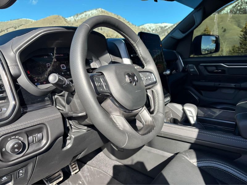 RHO trim, Diamond Black Crystal Pearlcoat exterior and Black interior. CARFAX 1-Owner. Heated Leather Seats, Navigation, Sunroof, CD Player, iPod/MP3 Input, Alloy Wheels, 4x4, Trailer Hitch, DUAL-PANE PANORAMIC SUNROOF, TRANSMISSION: 8-SPEED AUTOMATIC (8HP7... RHO LEVEL 1 EQUIPMENT GROUP, Bed Liner.
